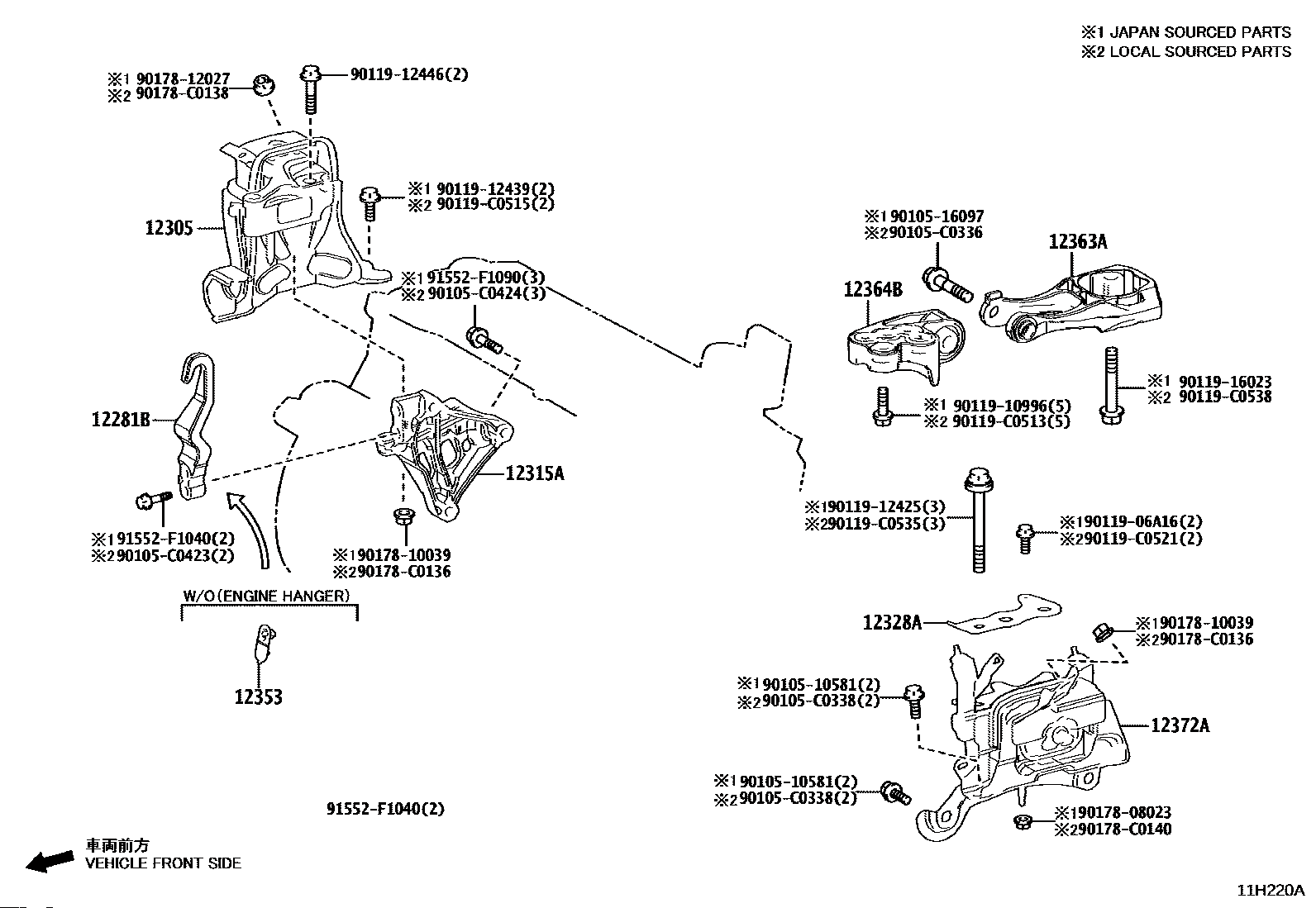 【12281B】1228125030 HANGER, ENGINE, NO.1