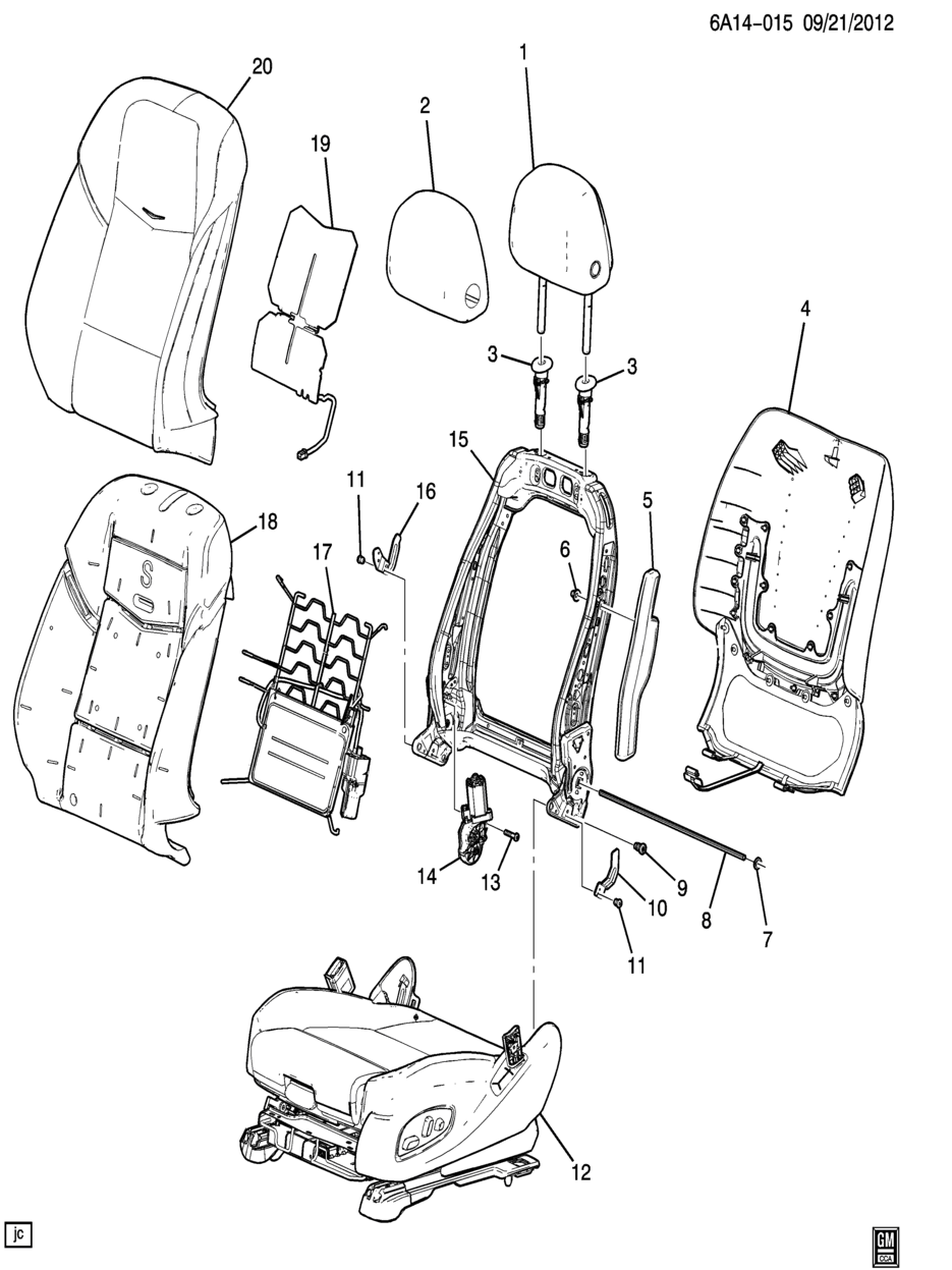 Frame, front seat back (including 7,8, 13,14) (including reclining actuator) (power) (without memory