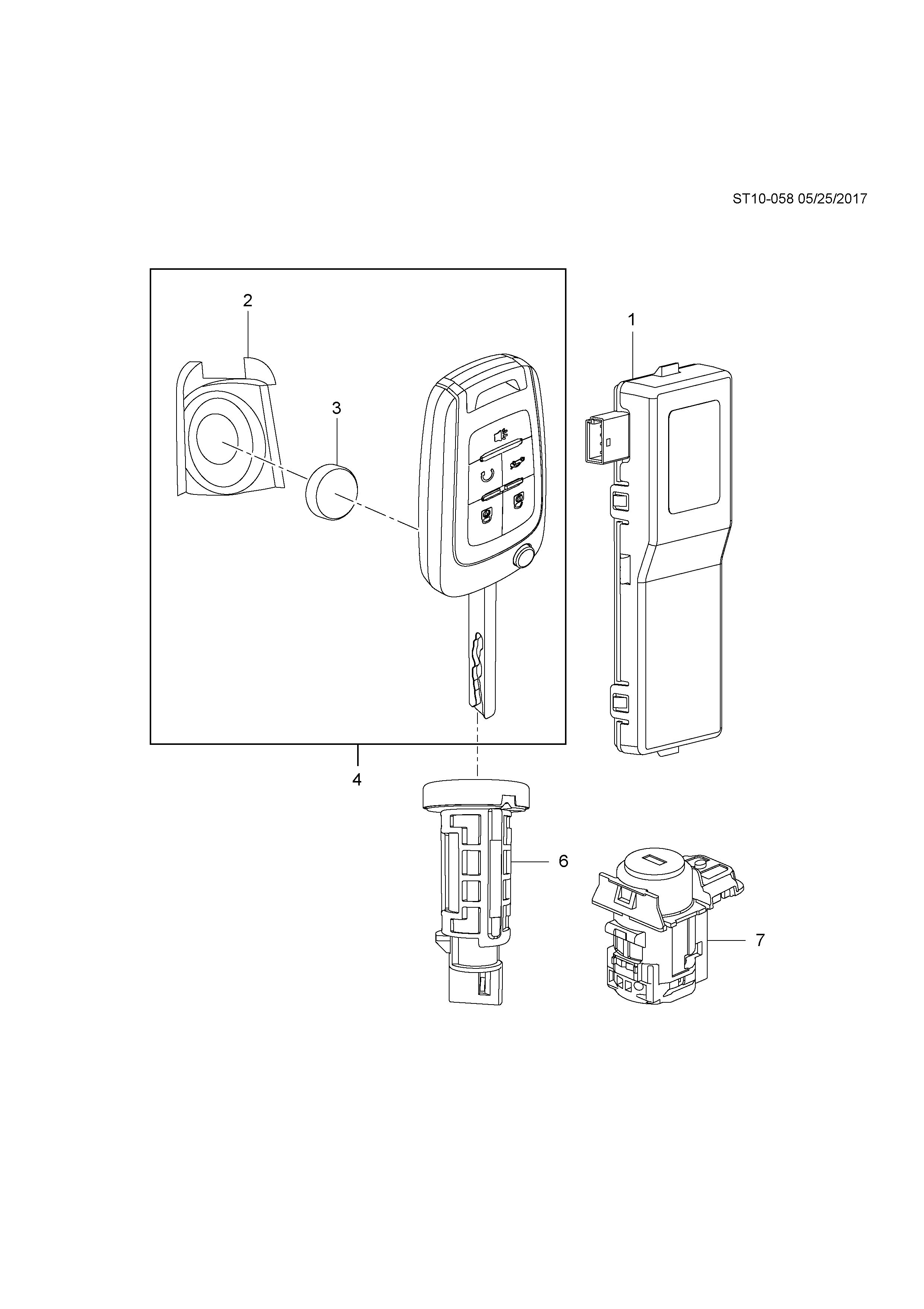 Key-folding, door lock & ignition (w/control lock transmitter) (folding) (part of 1) (including 4)