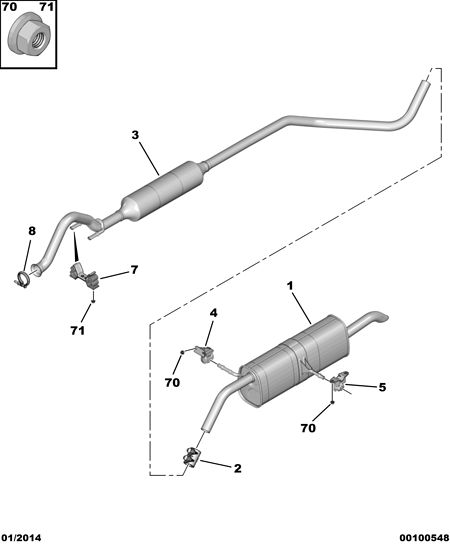 Muffler, exhaust pipe rear