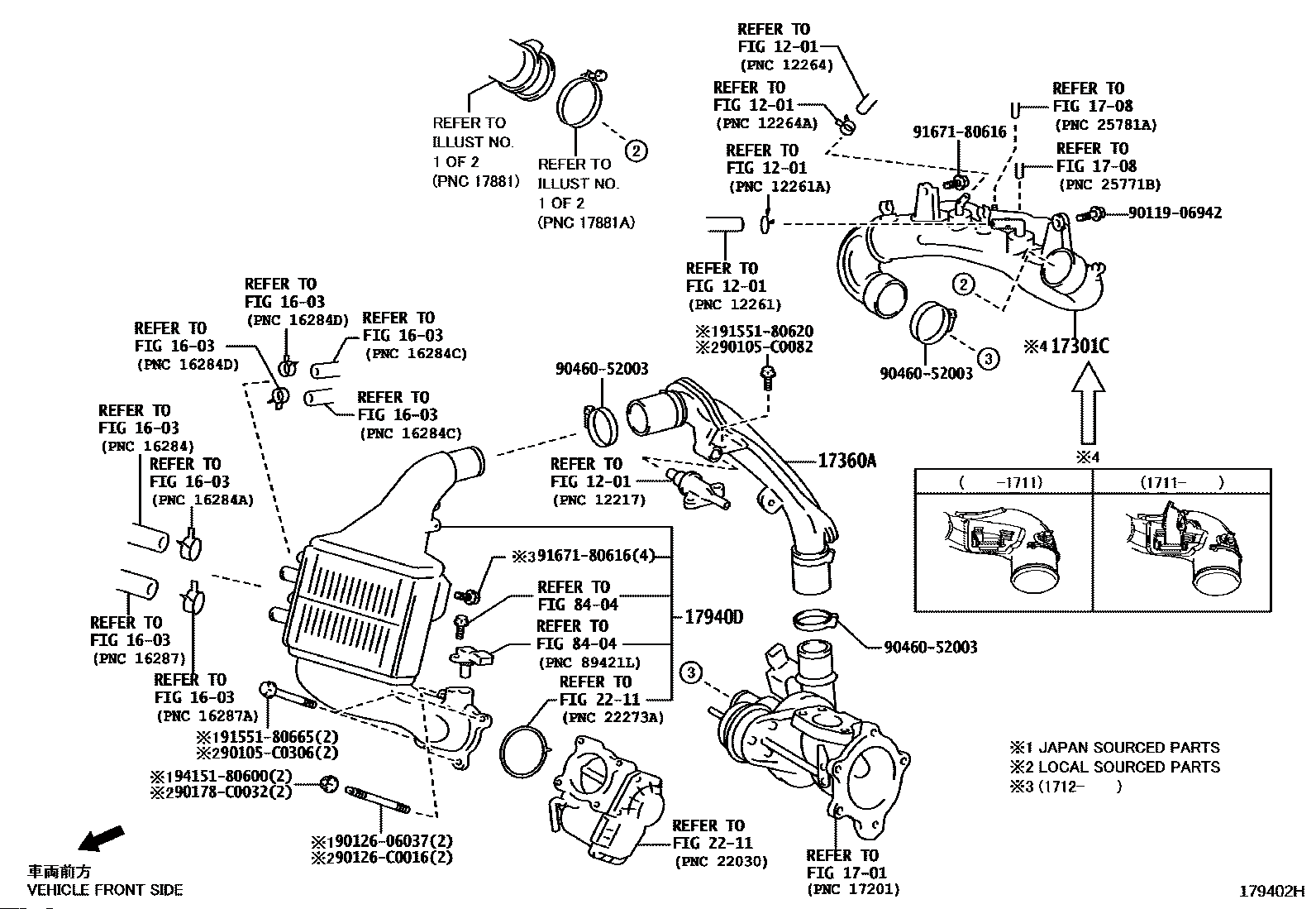 【17301C】173010Y010 Duct sub-assy, air intake, no.1