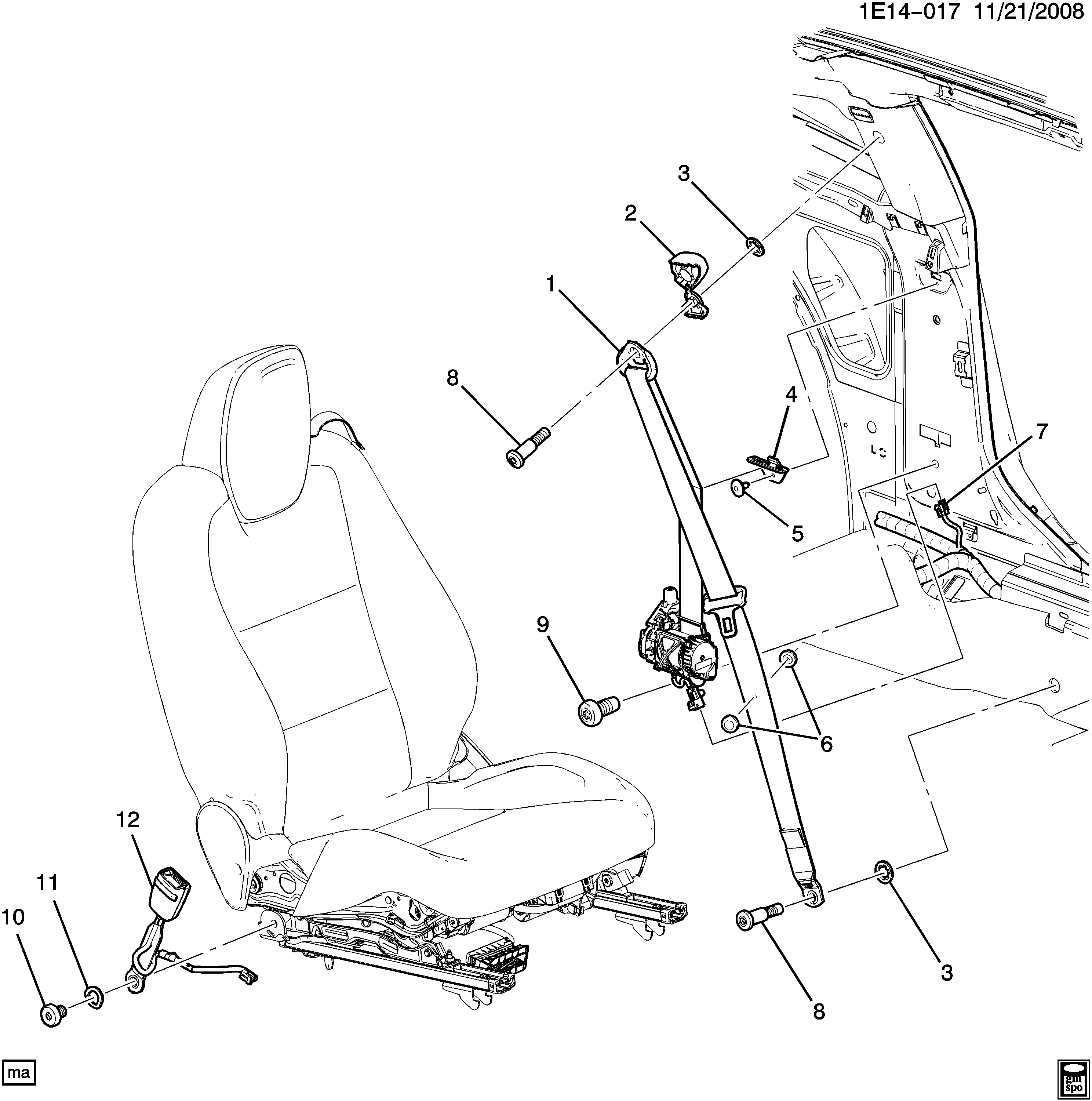 【1】19257789 S/kit passenges (retractor side) (with pretensioner) (incl 2-4,6, 8) (black)