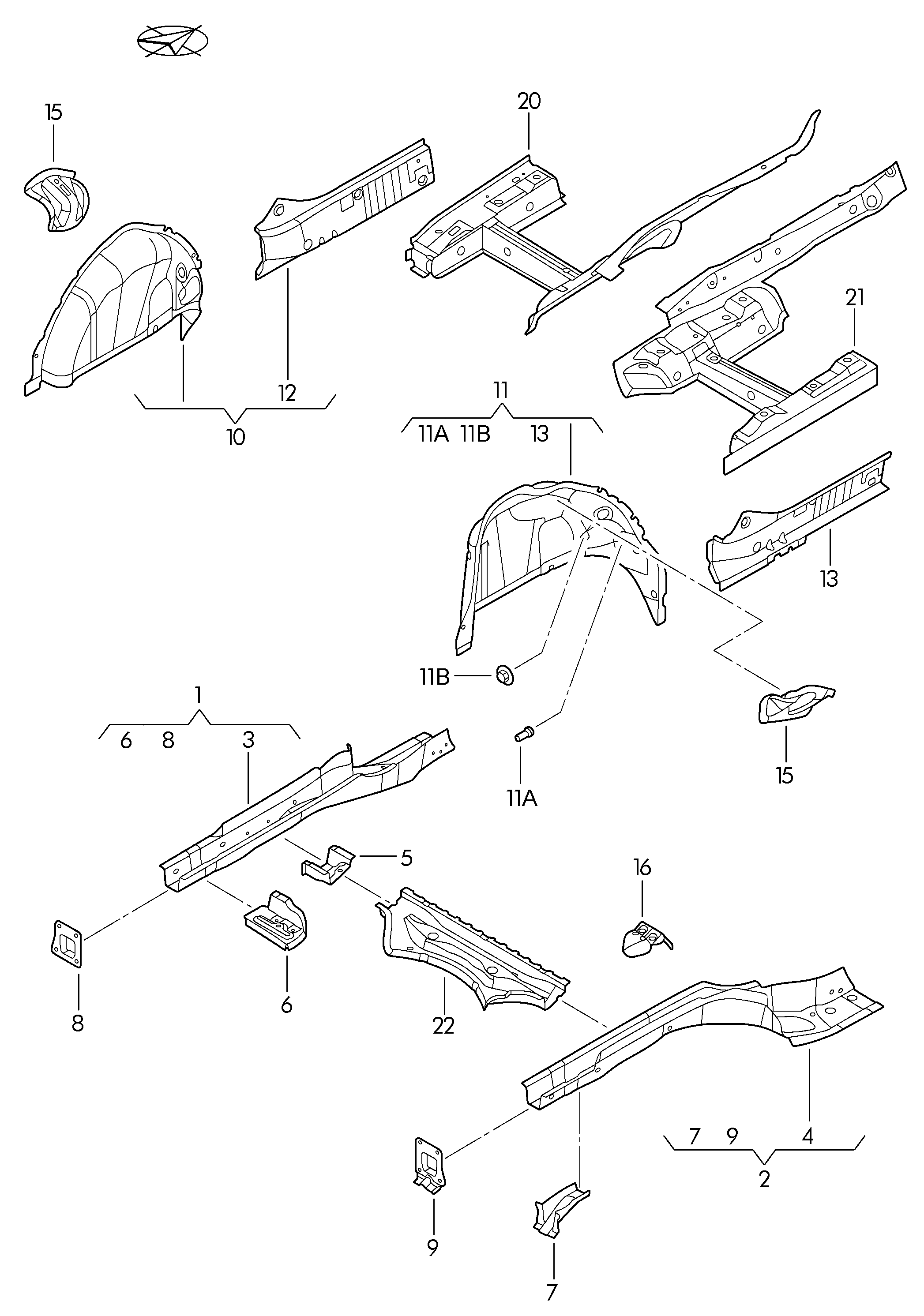 【7】1K5803612 REINFORCE-REAR FLOOR