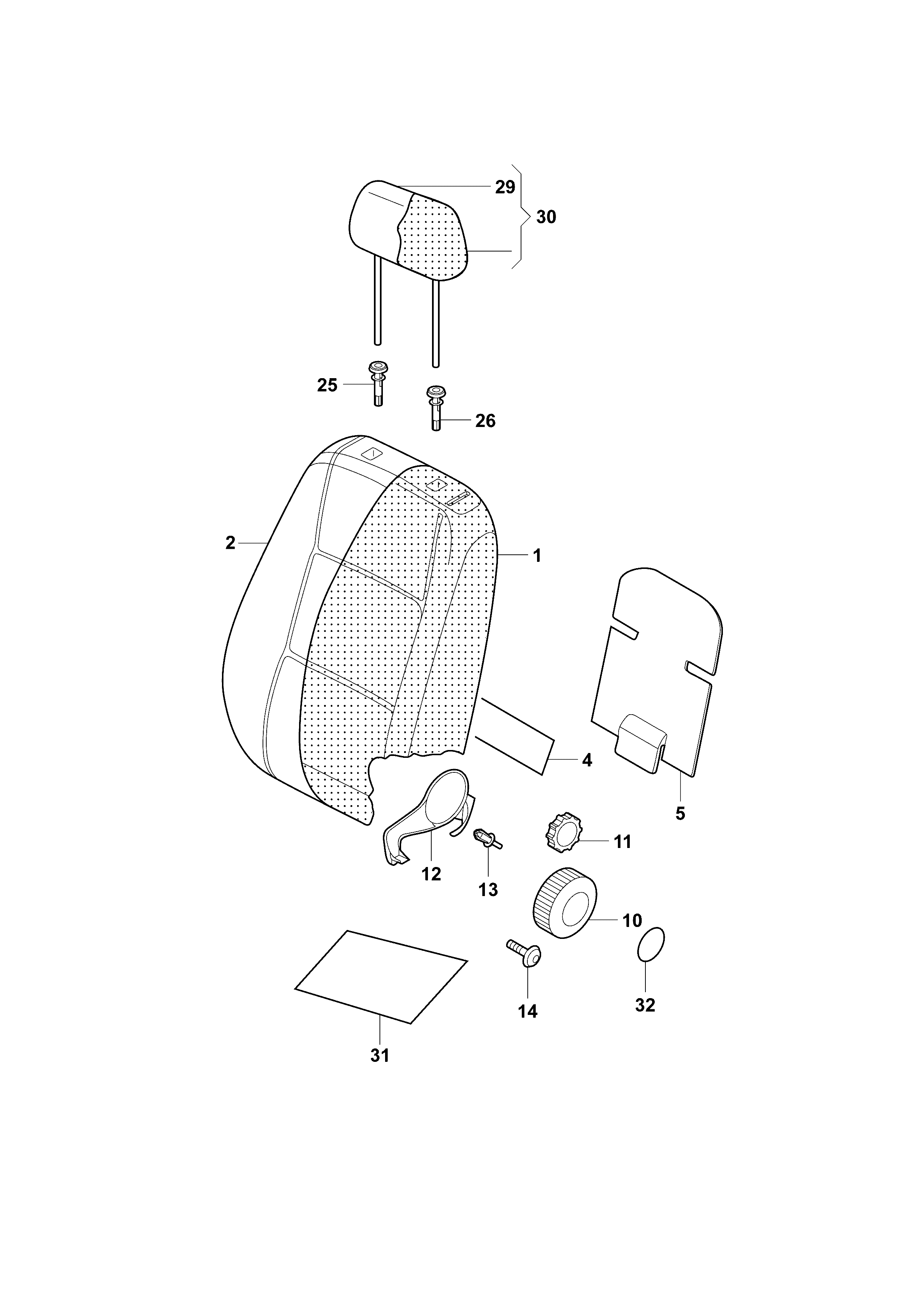 【25】1KD881920D Guide, with headrest knob, adjustable