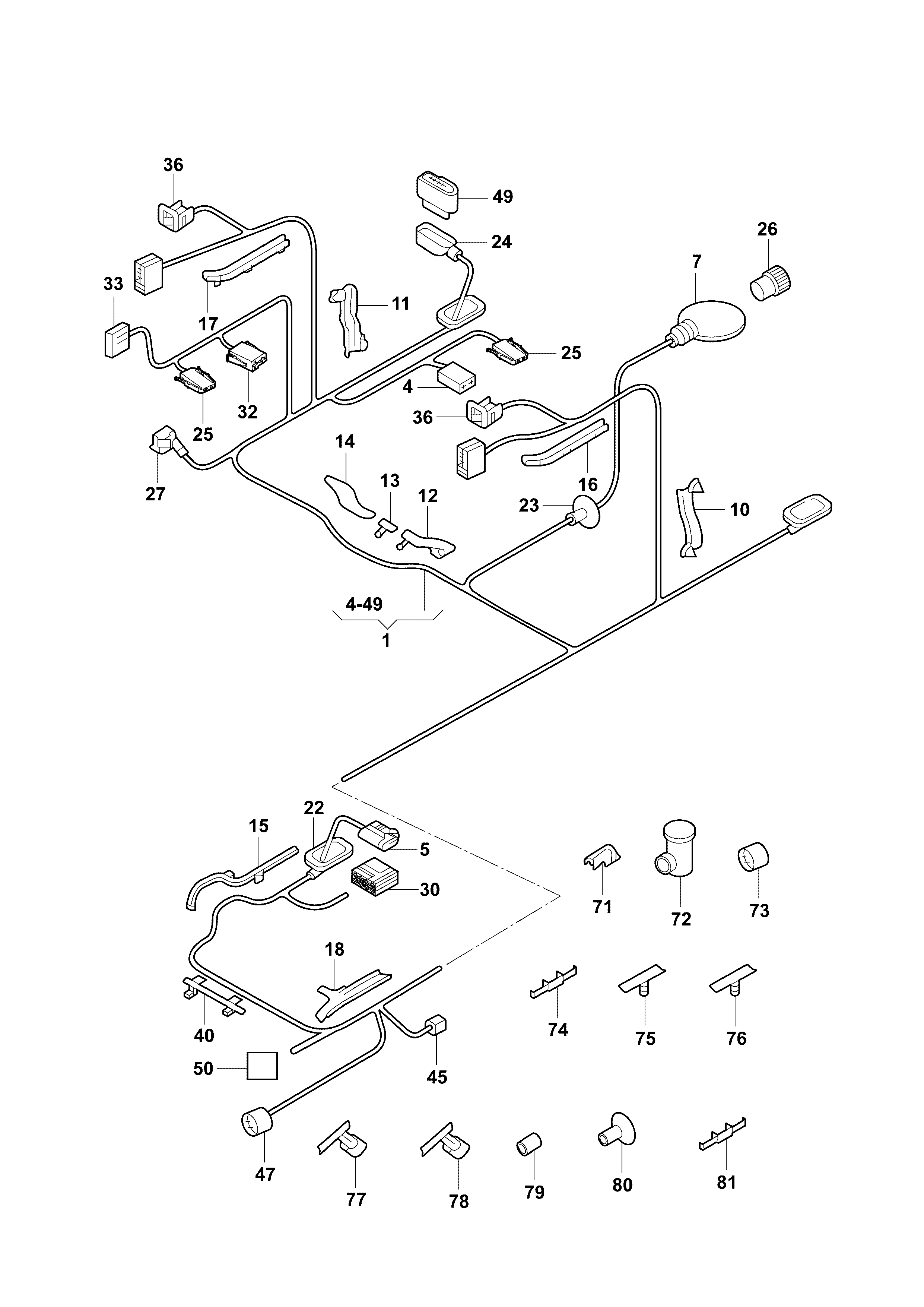 【1】1T0971051H7 Center wire harness