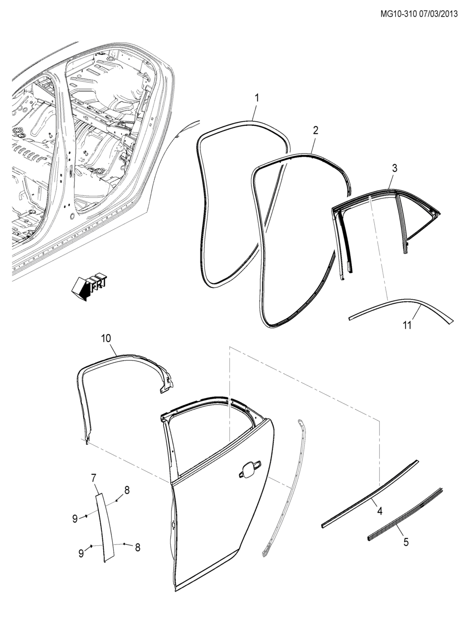 Weatherstrip, r. rr. door inner