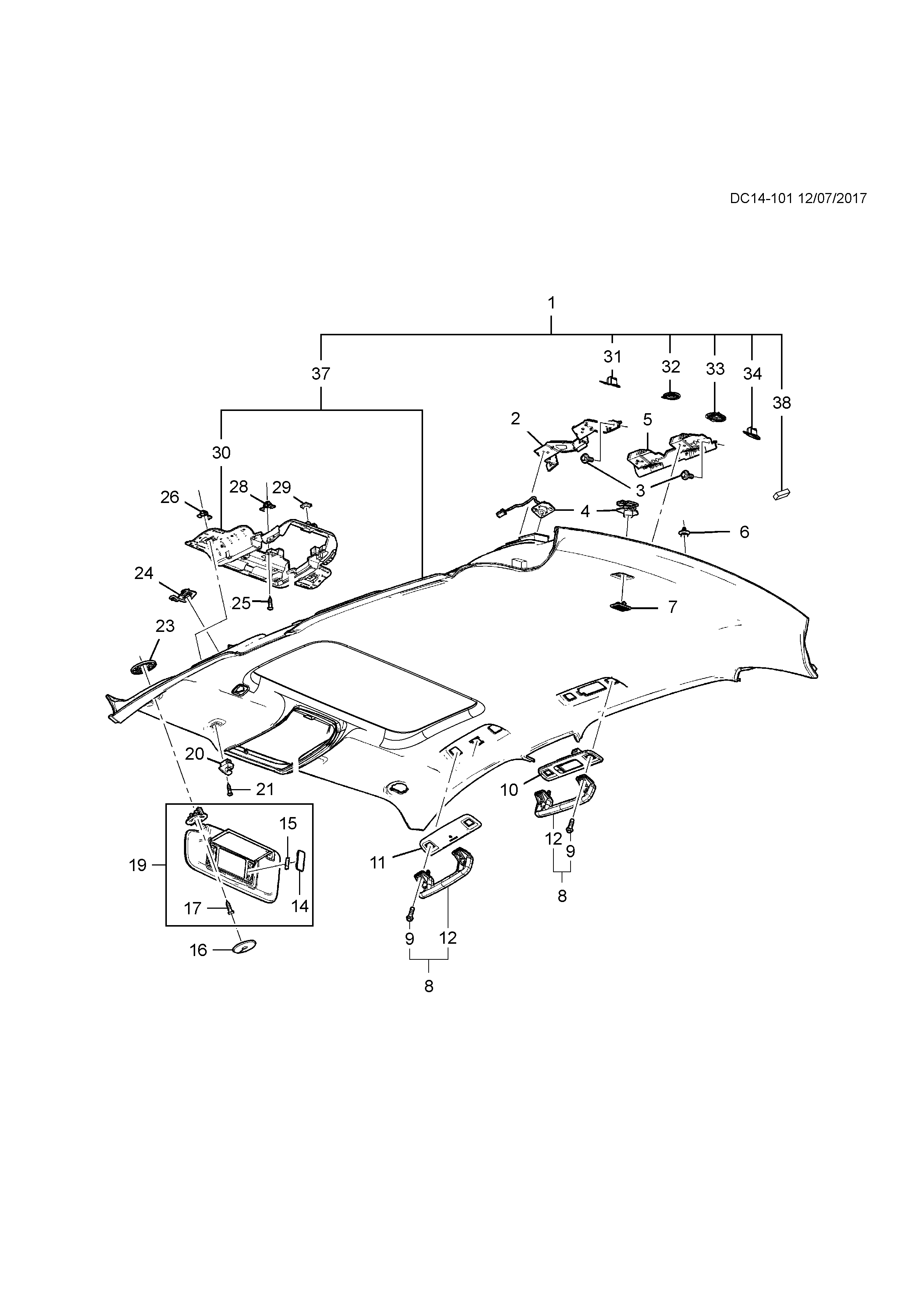 Clip (l), roof lining garnish