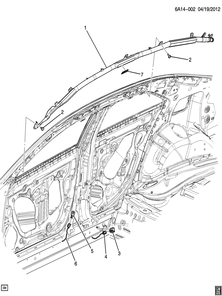 Sab, fr & rr seat roof rail (incl 2, 7) (for use with 2way connector 19180245 (w/lead)