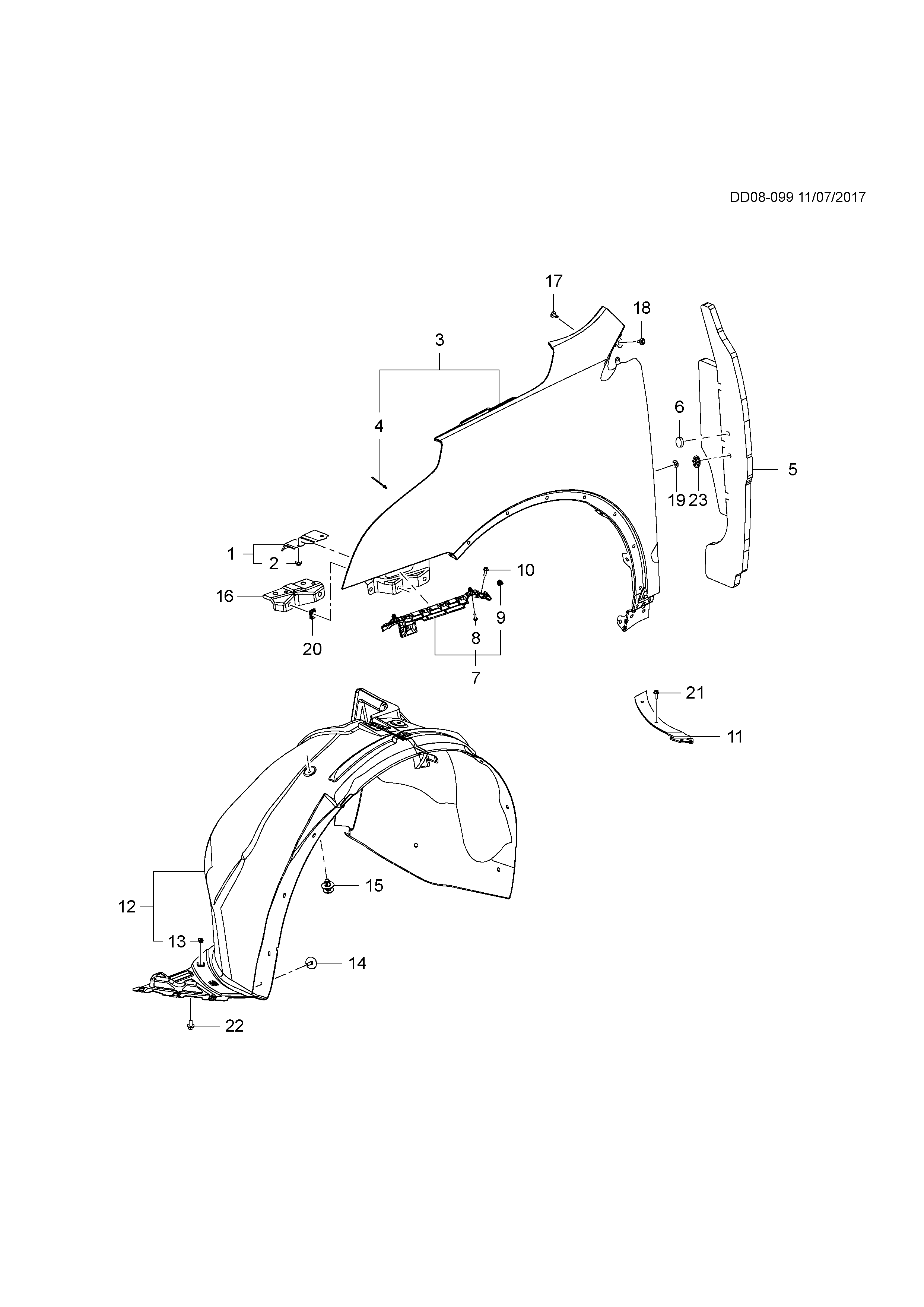 Guide, front bumper skin (incl. 8,9)