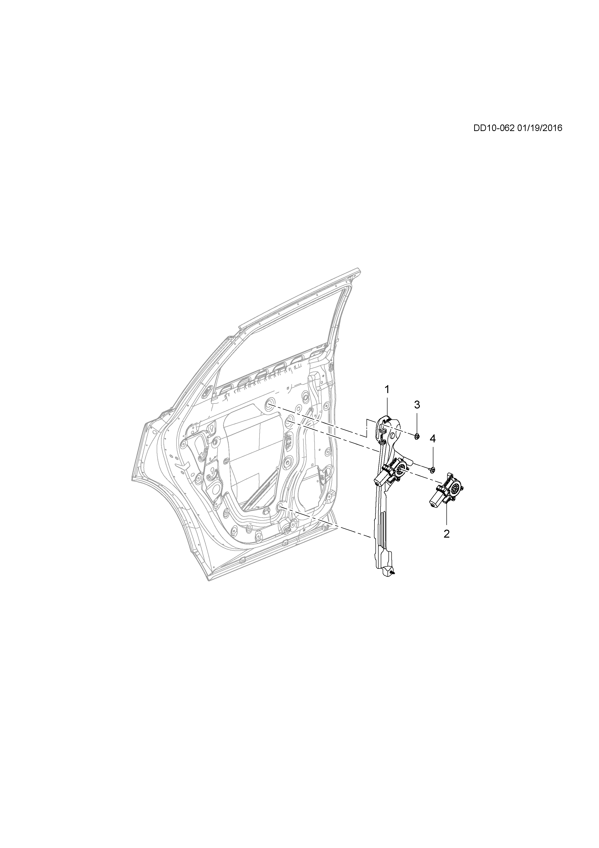 Regulator, front door window