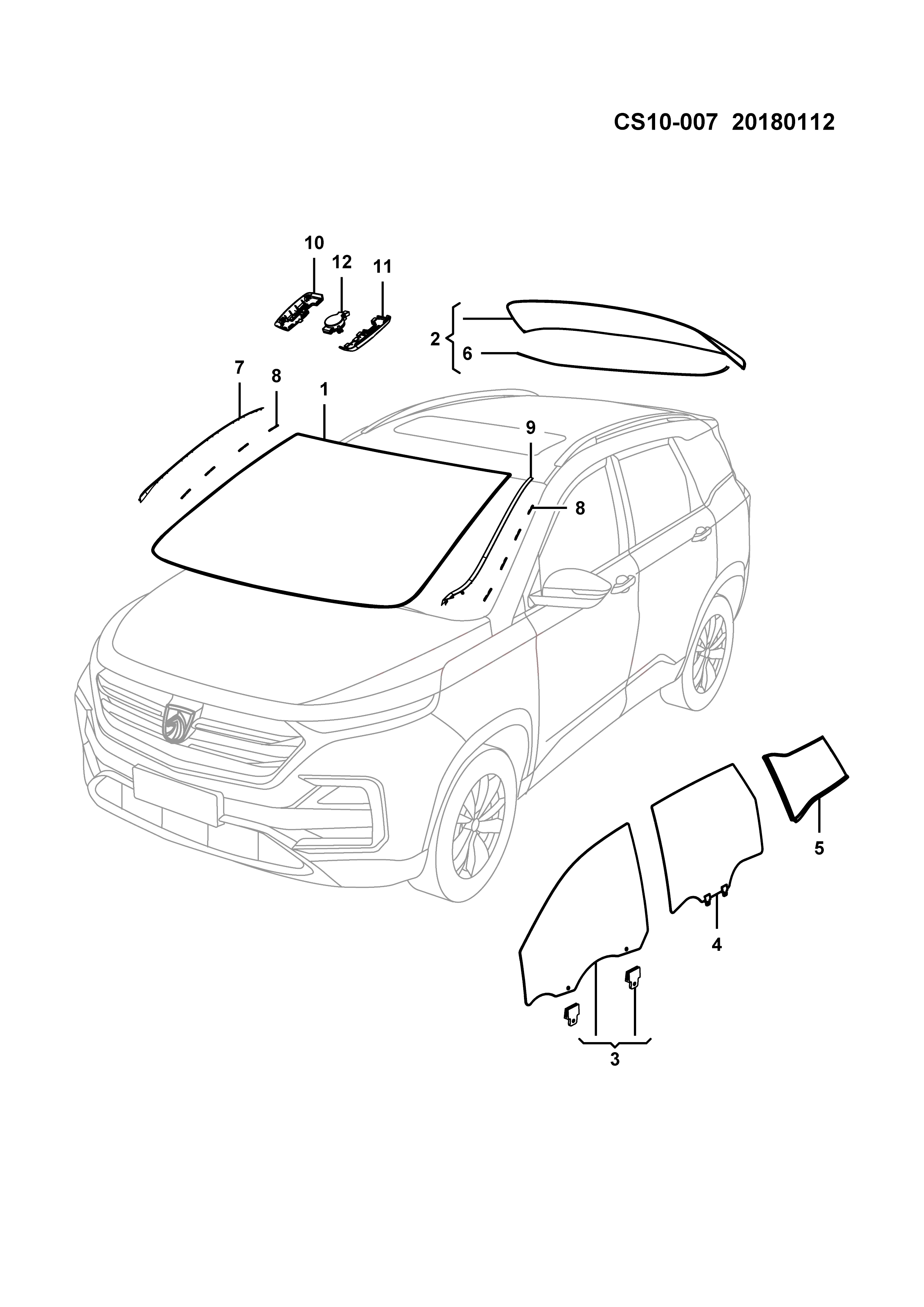 Glass assy-side window (gray w/strip stainless steel), lh