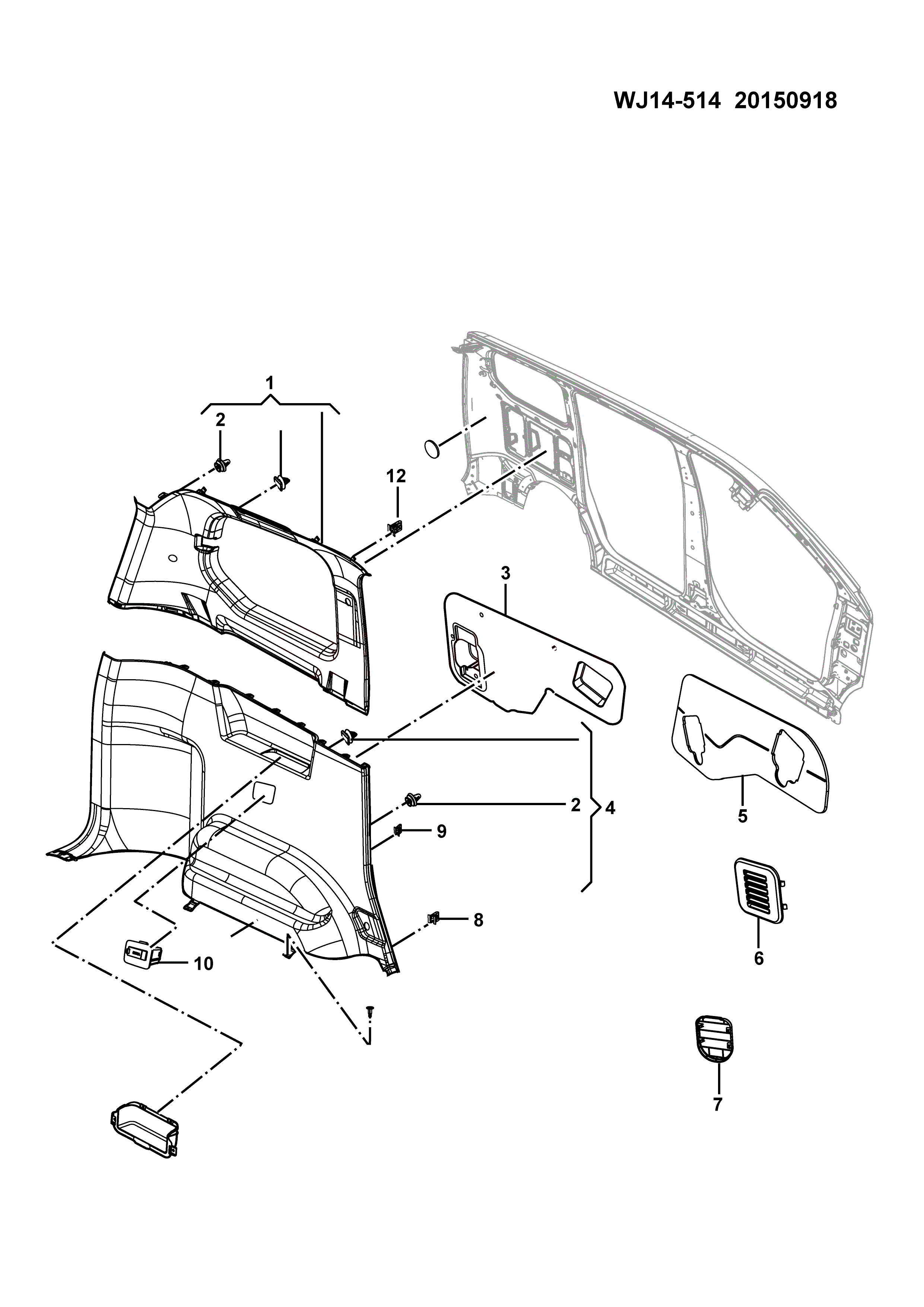 Trim assy-qtr lwr rh
