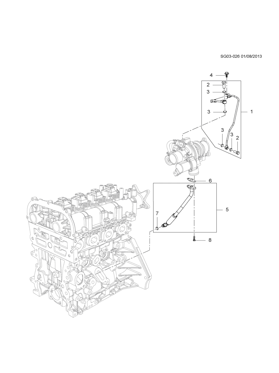 Hose, turbo oil feed (for front 20140630) (incl 2,3)