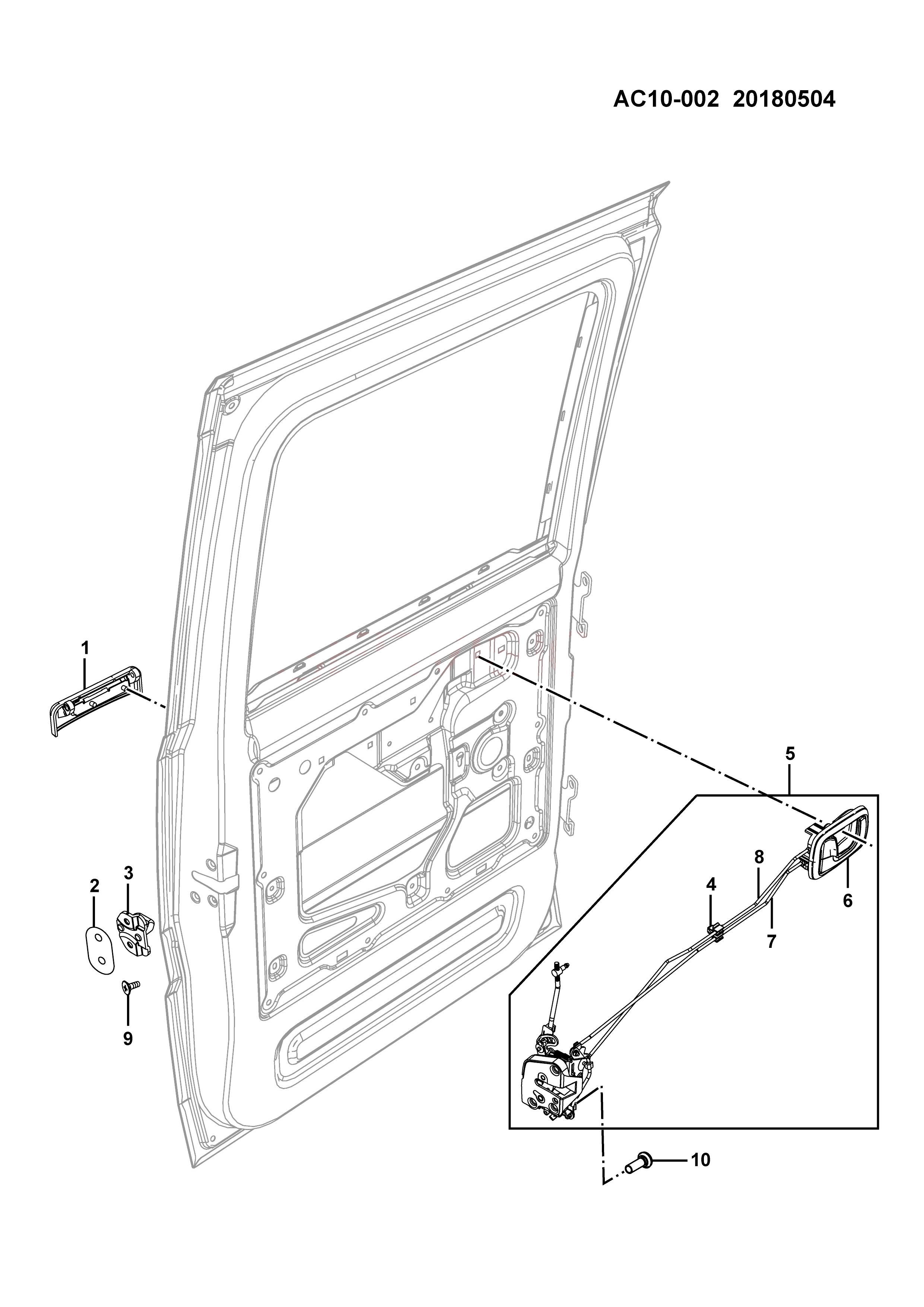 Lock & handle assy-rr