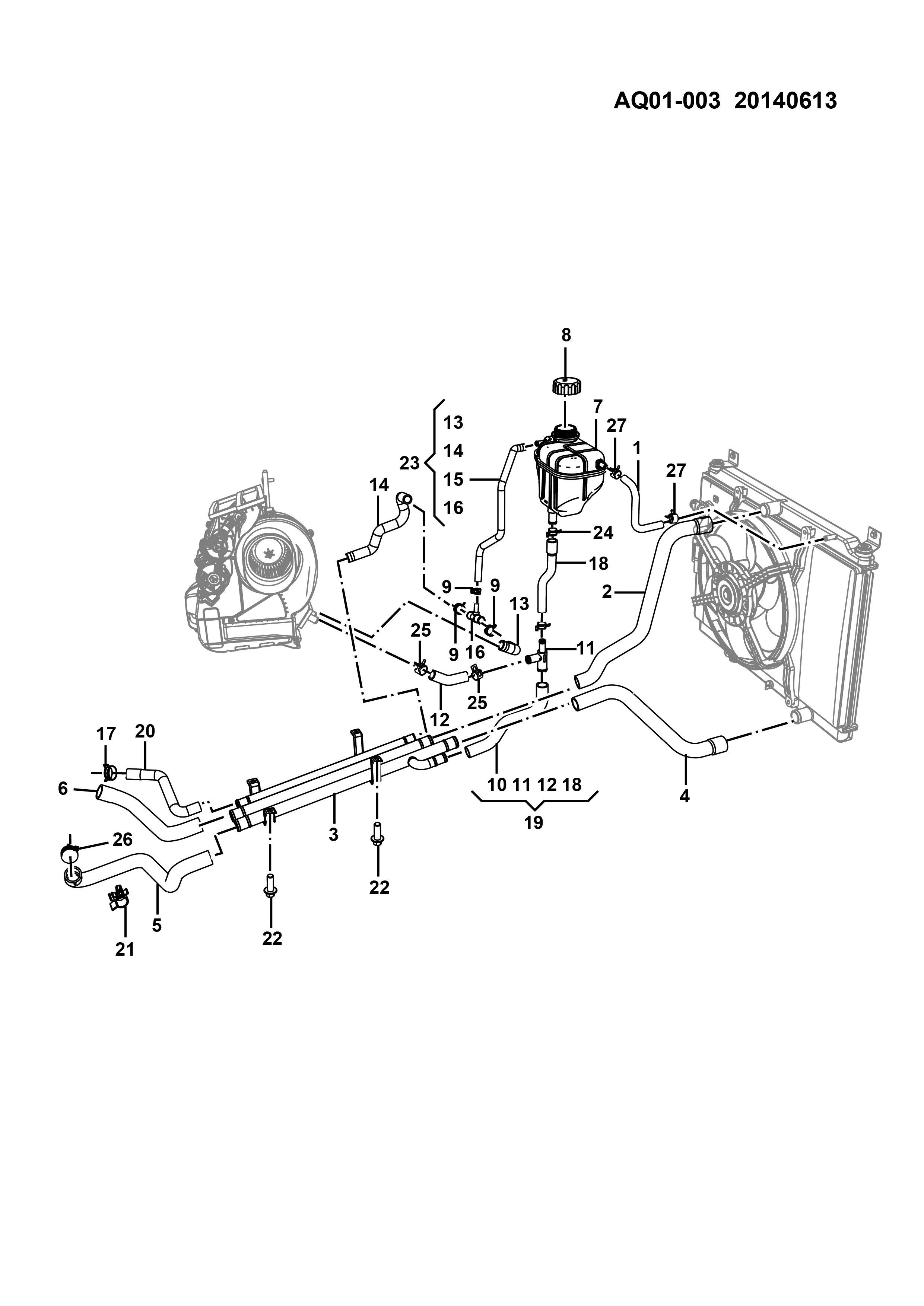 Pipe, radiator & expansion ta