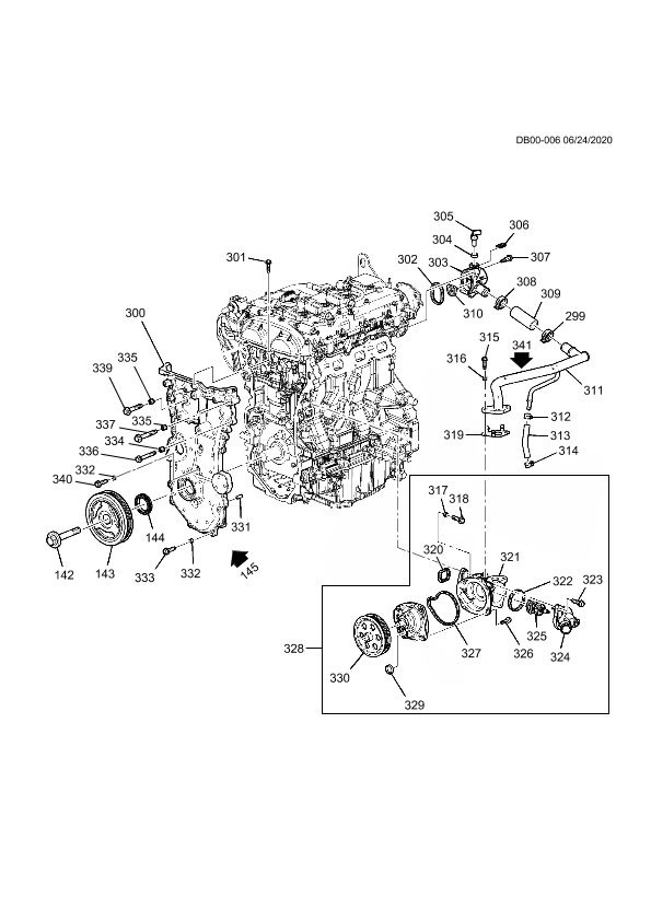 Water outlet (rr drive) (incl. 302,305-307,309,310)