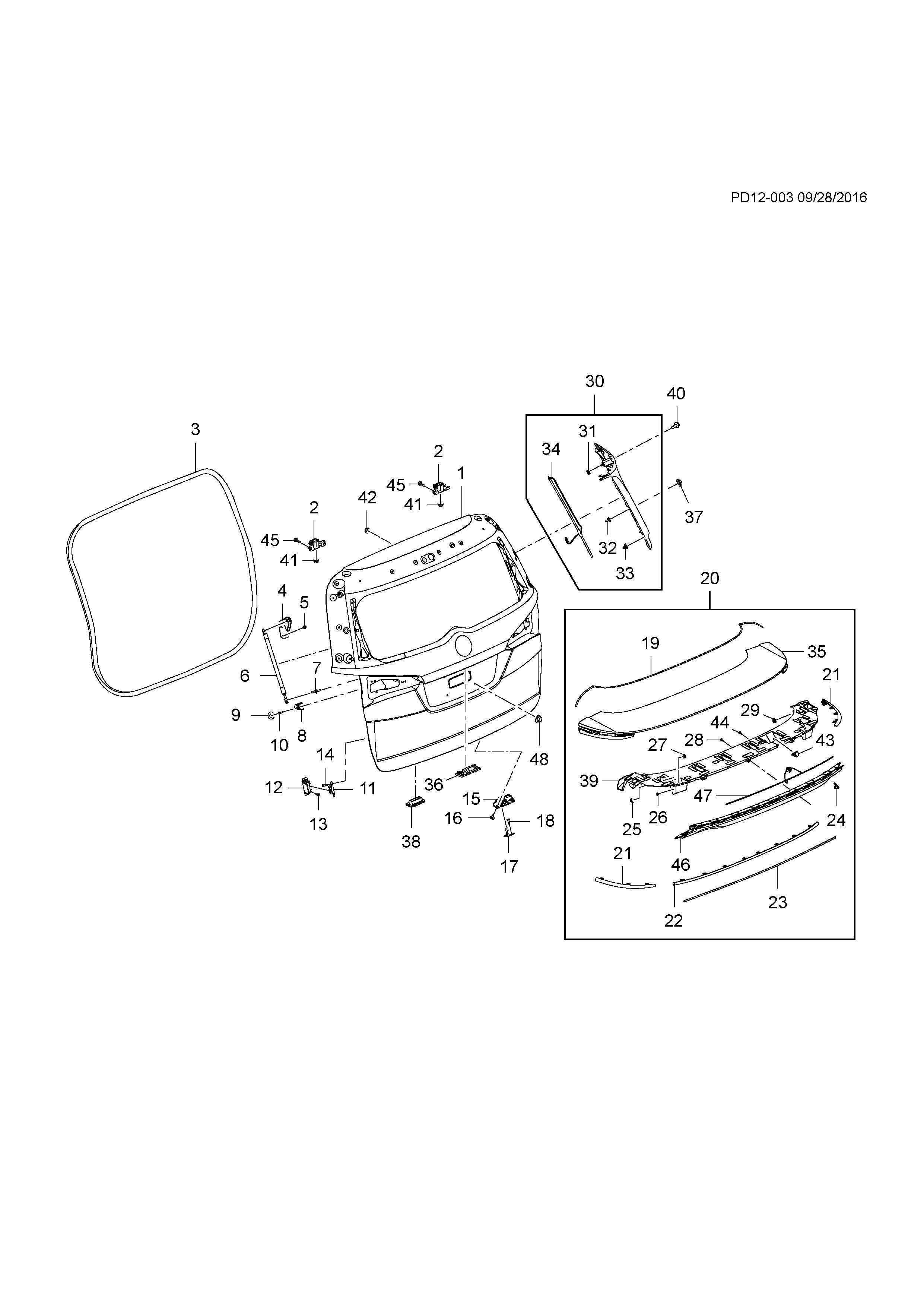 Spoiler, rr end (w/shld assy, service primer) (incl. 25, 27-29, 35, 39, 43-44, 46-47) (without elect
