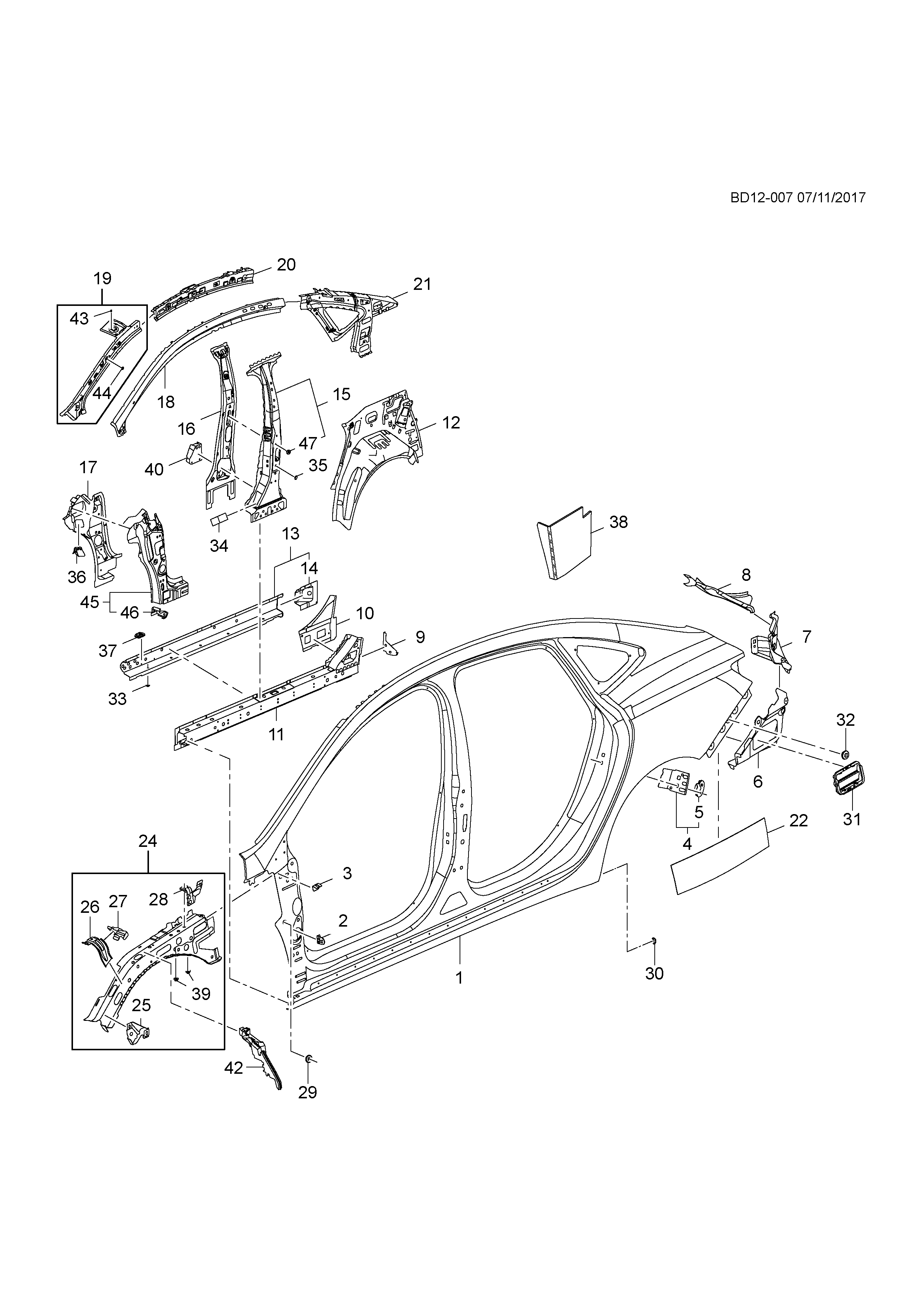 Reinforcement, center pillar, outer (incl 47)