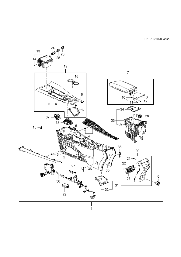 Harness, floor console front (part of 1)