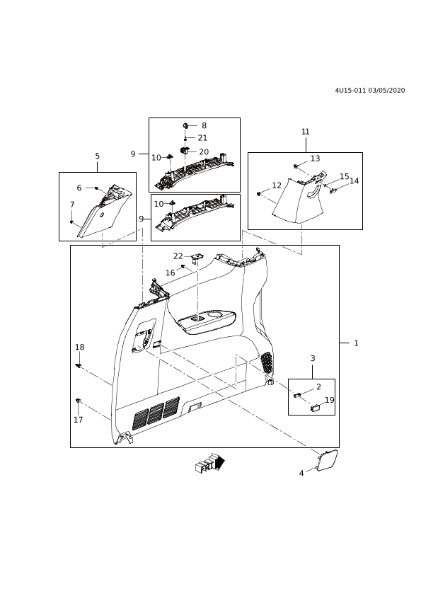 【001】26311743 Garnish, rr. pillar lower (incl. 3,16-18,22)