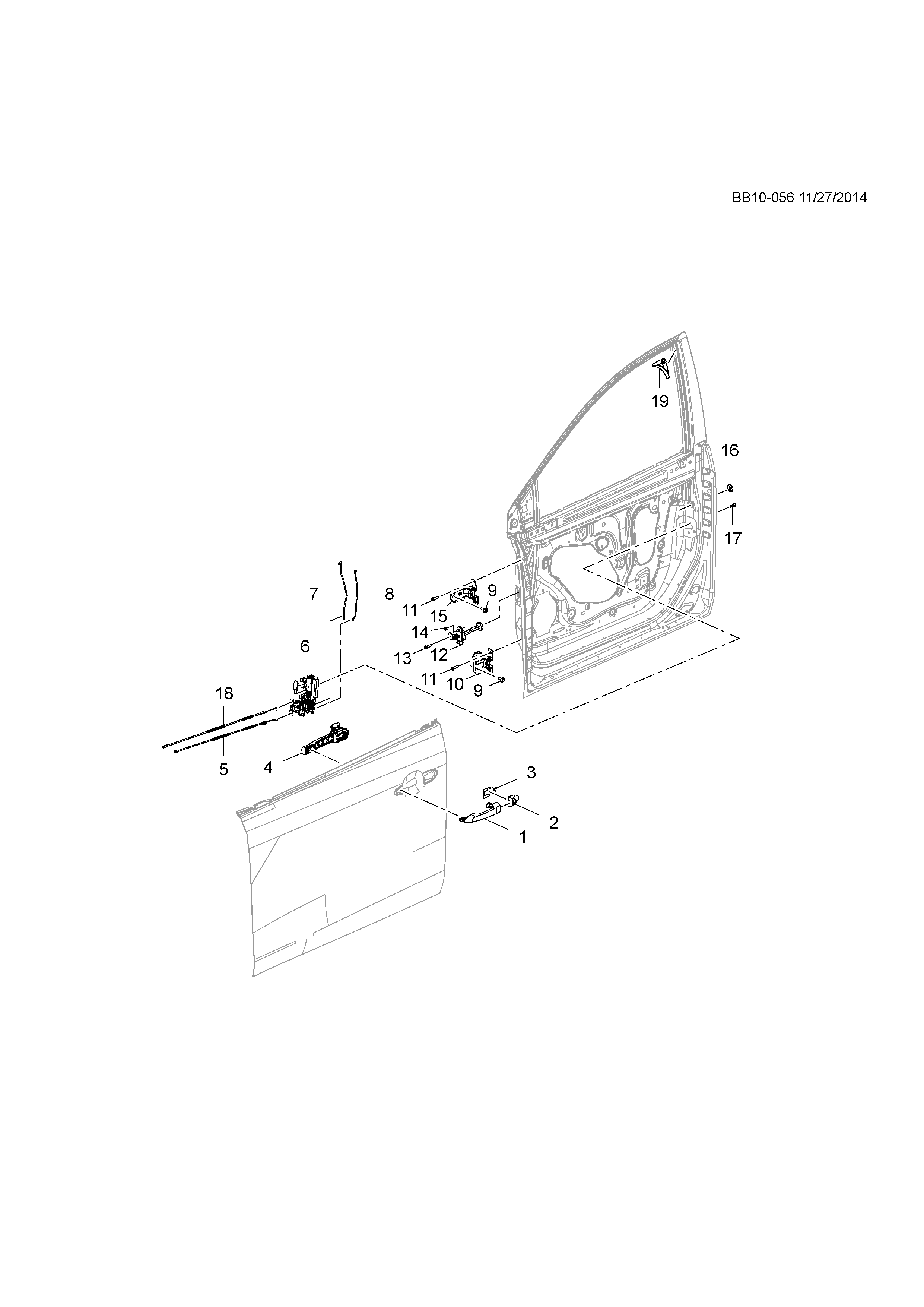 【018】26265345 Cable, r. fr. side door locking