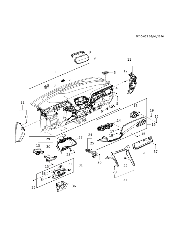 Garnish, instrument panel center trim (incl. 13-14,17-18)