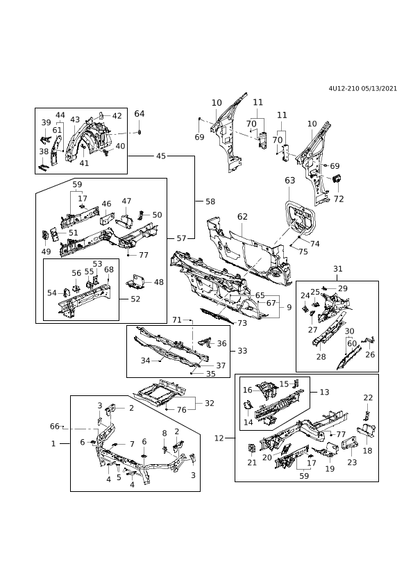 【052】DY26242720 Member, front cabin front inner (57 parts) (including 53-56,68)