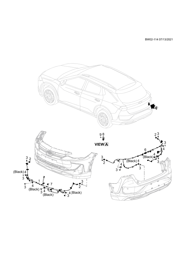 Harness, rear object alarm sensor