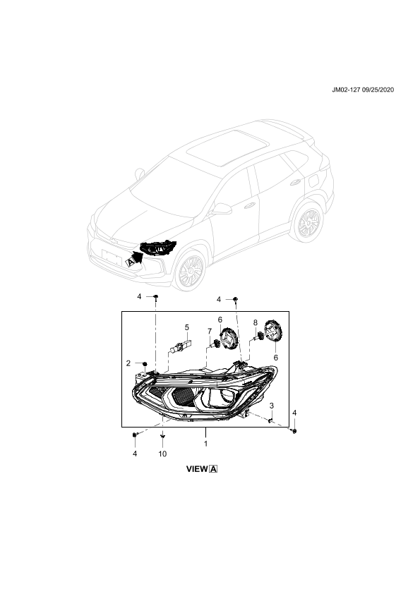 Headlamp (halogen projection headlamp) (incl. 2-3,5-8)