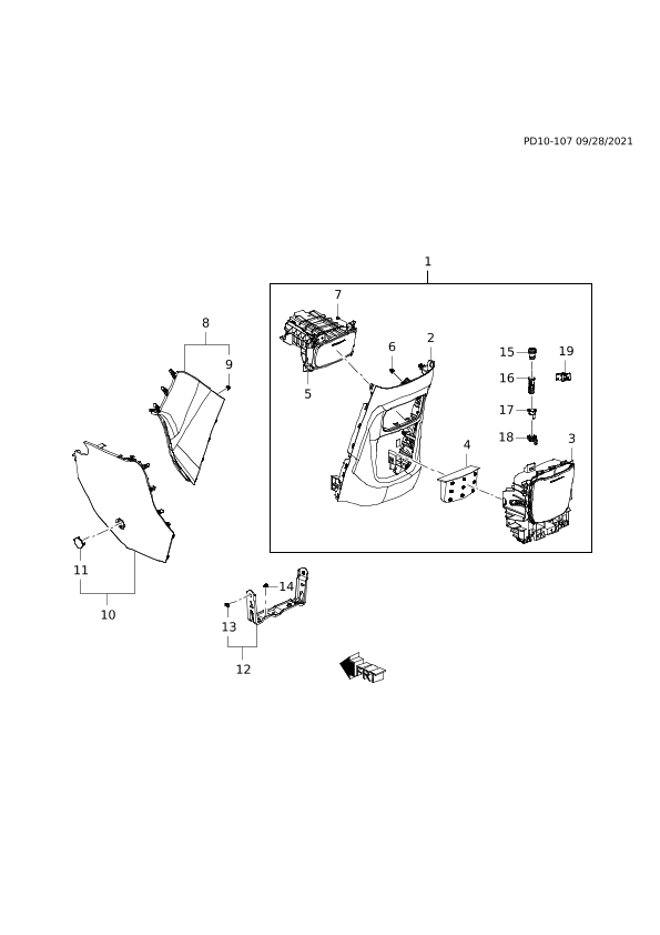 Console, front floor lower (for 20200810 front use) (incl. 2-7,15-19)