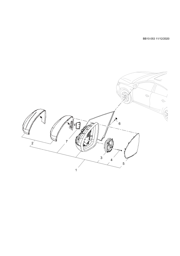 Mirror, outer (incl 2-5,7)