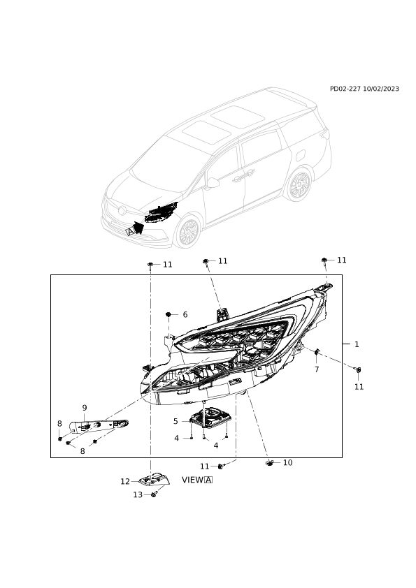 Headlamp, (headlamp assy) (for rear 20200810 use) (for rear 1st design see 26221959) (including 4-9)