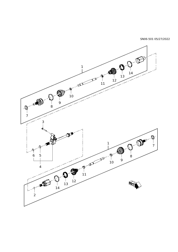 Shaft (l), front drive (including 2,7-14)
