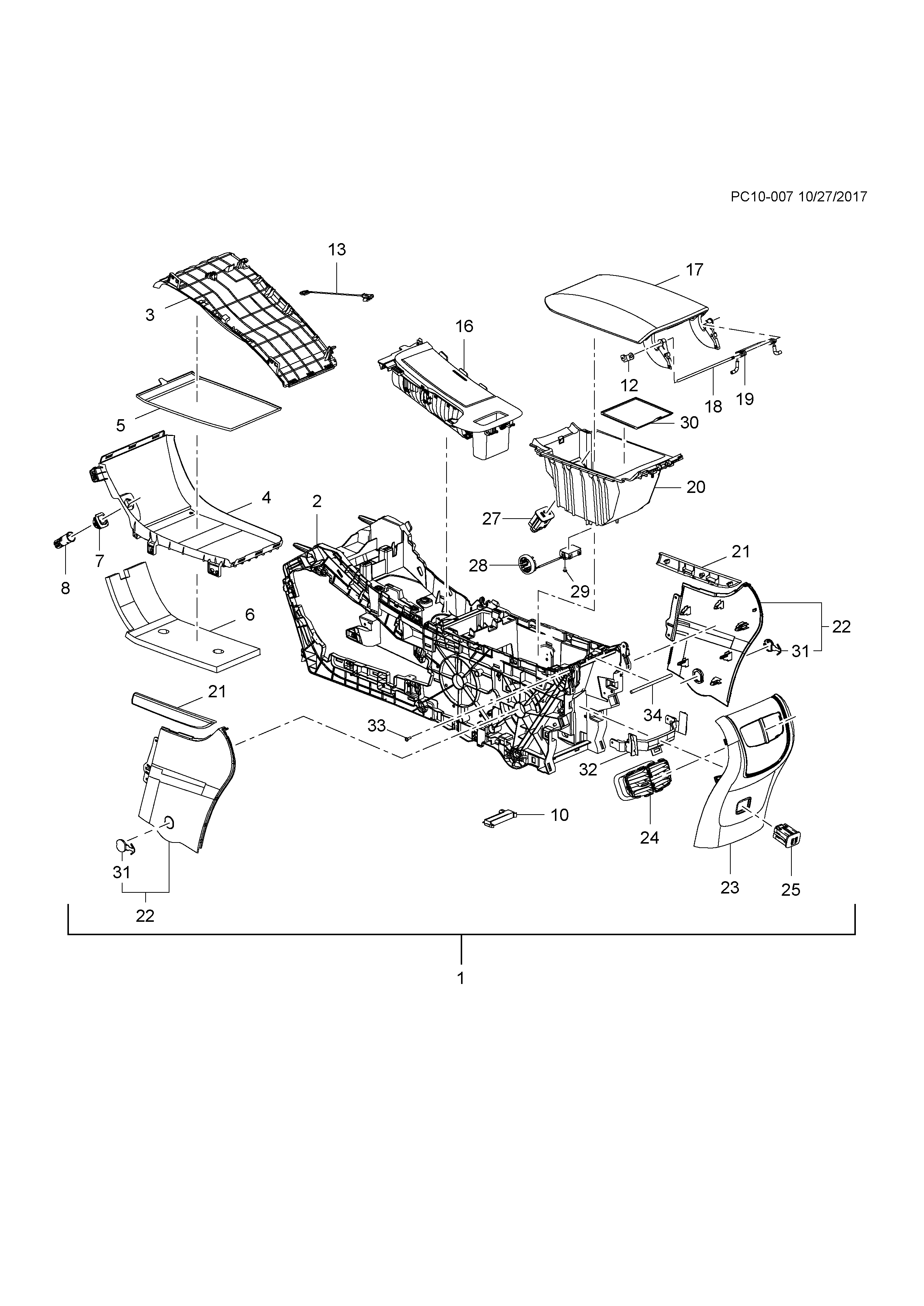 Garnish comp., fr. floor console rr