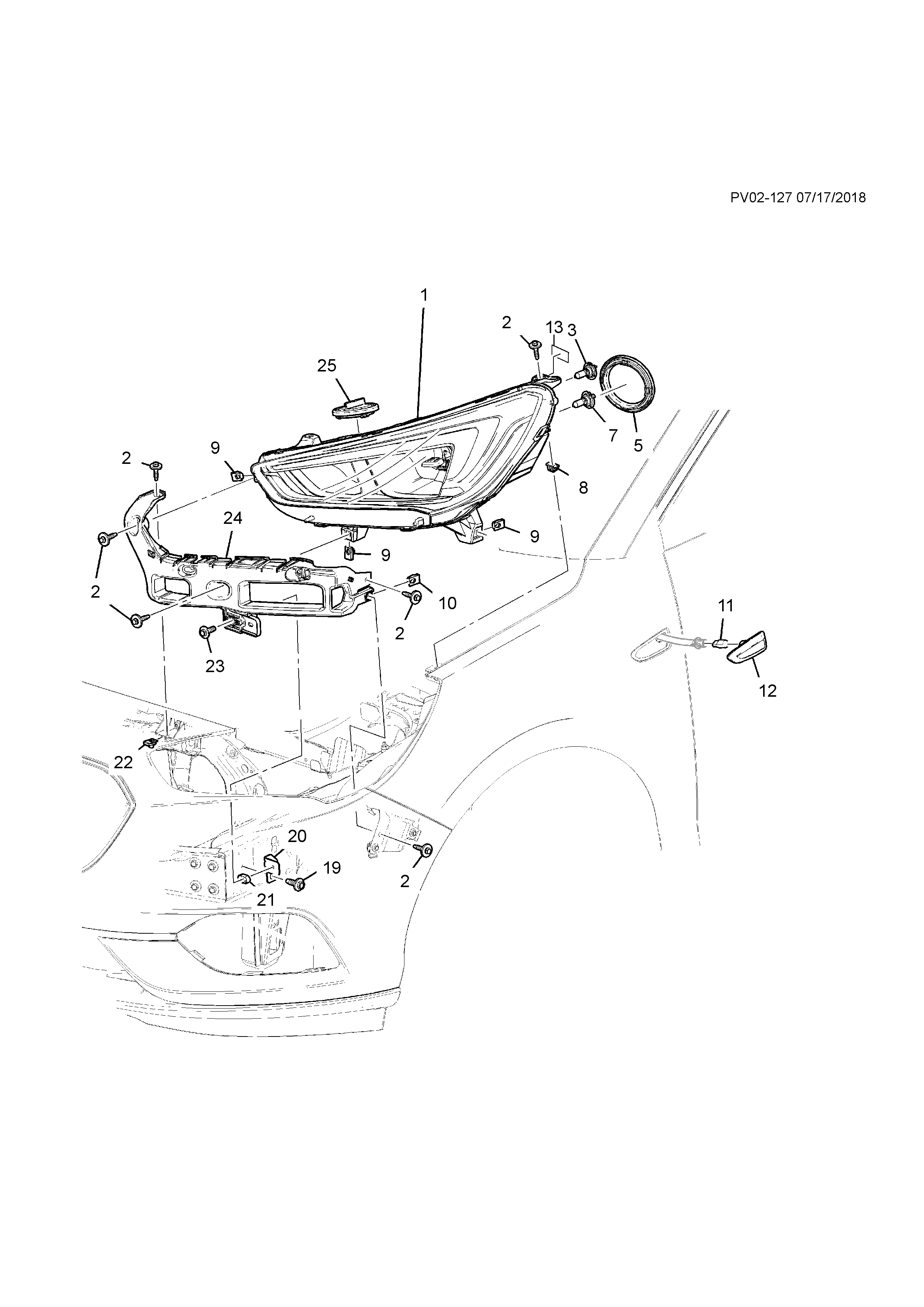 Headlamp, (high power SGM) (incl. 1, 3, 5, 7, 9, 13, 25)