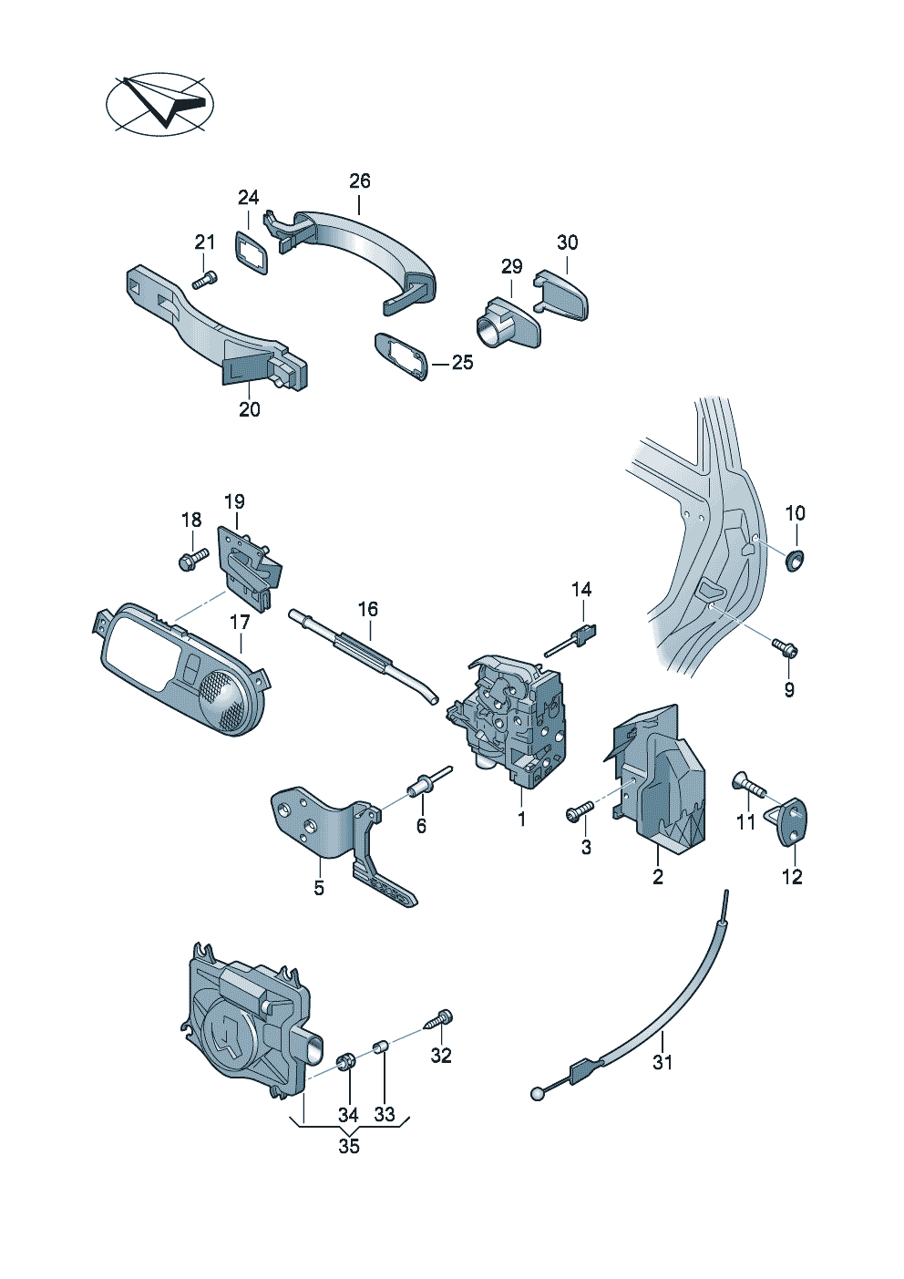 Locking the door For rear door fitting-tensioner Contact with KESSY Set of models)