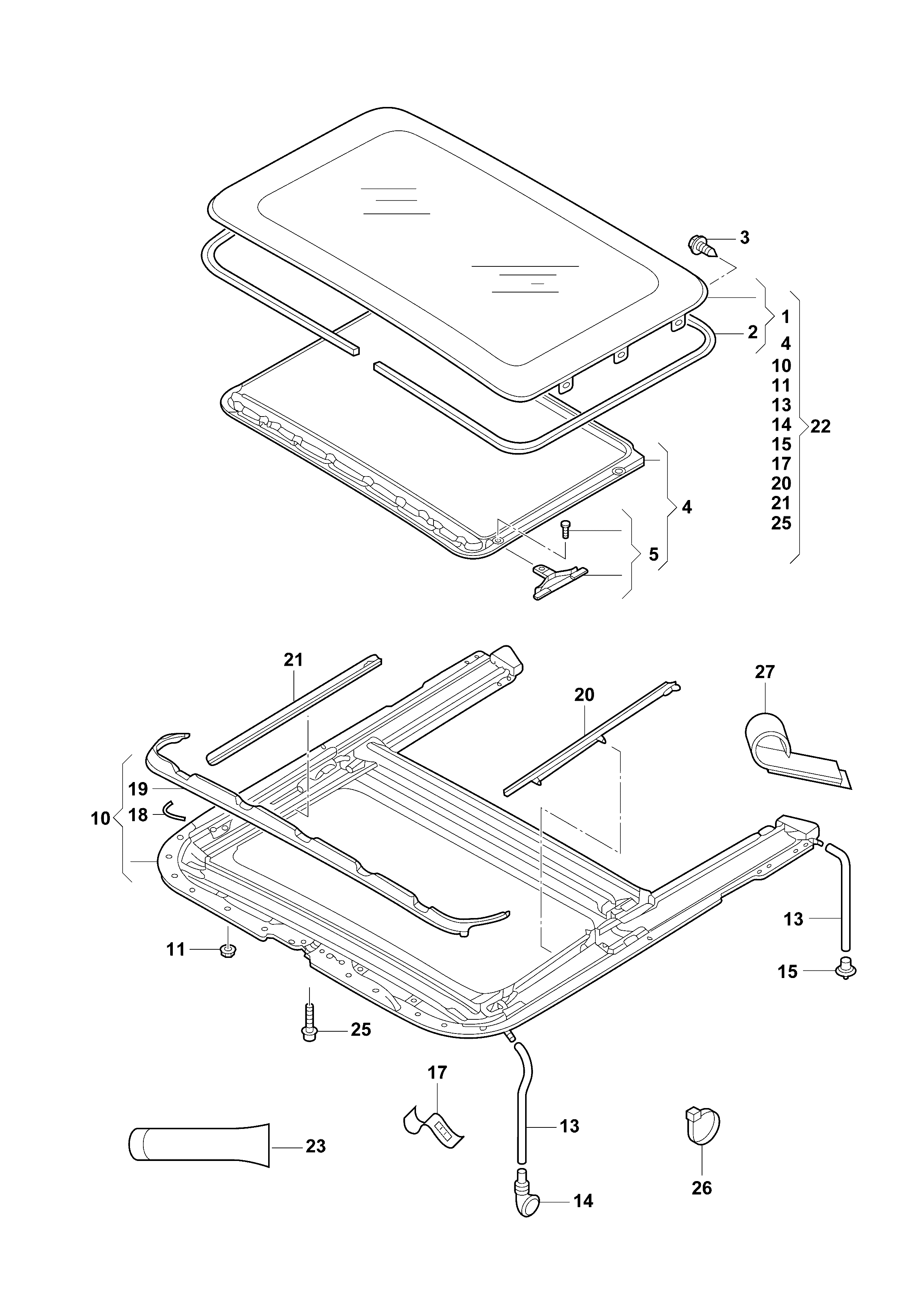 【4】3T08772552AV Frame, for slide roof opening, with boot