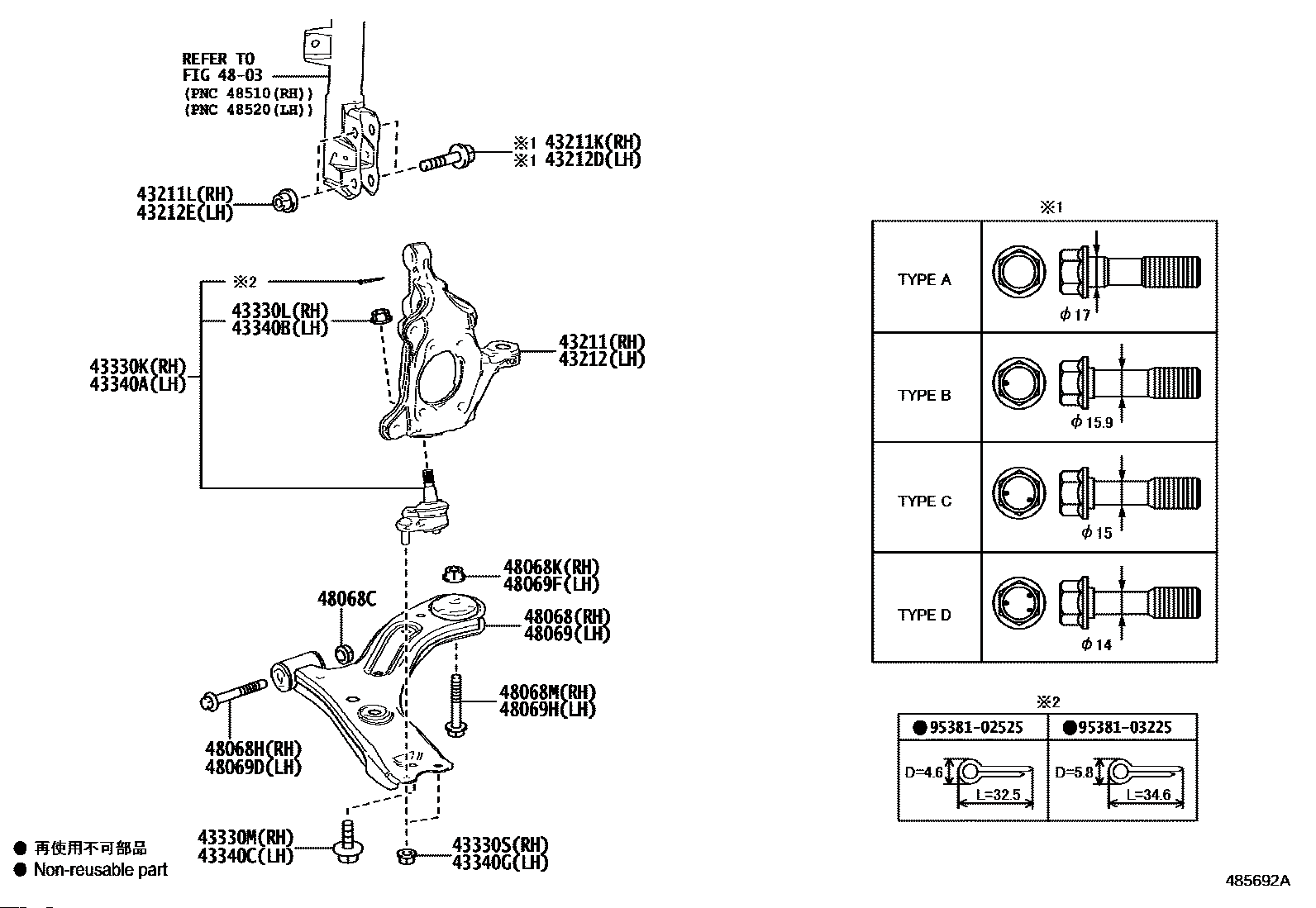 【48069H】9011914180 BOLT(FOR FRONT SUSPENSION LOWER ARM NO.1),RH/LH