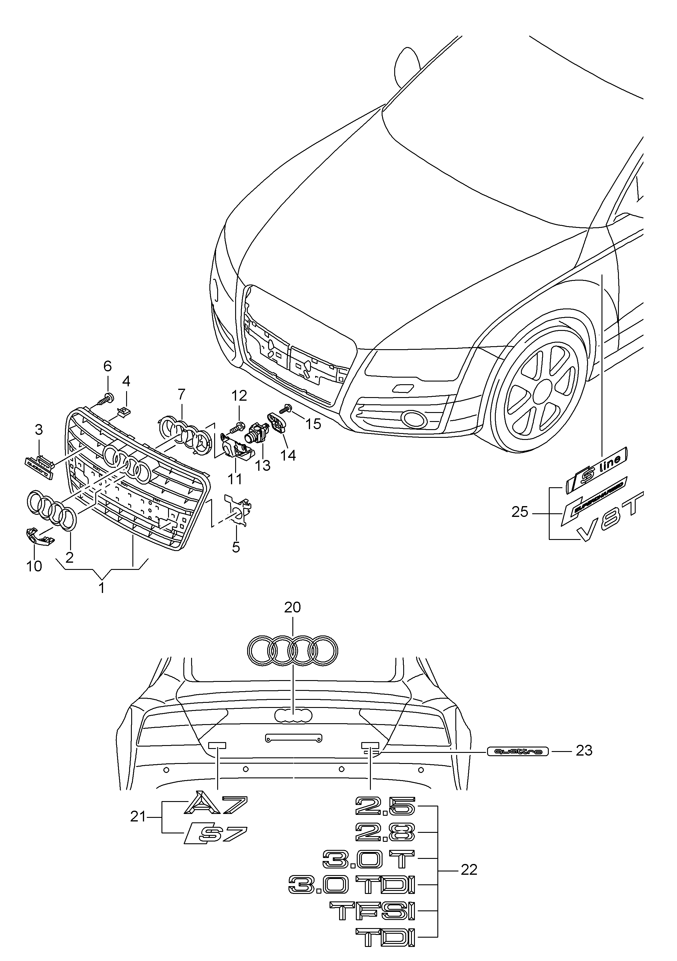 【7】4G8853037D9B9 Cover, radiator grille (sateen black)