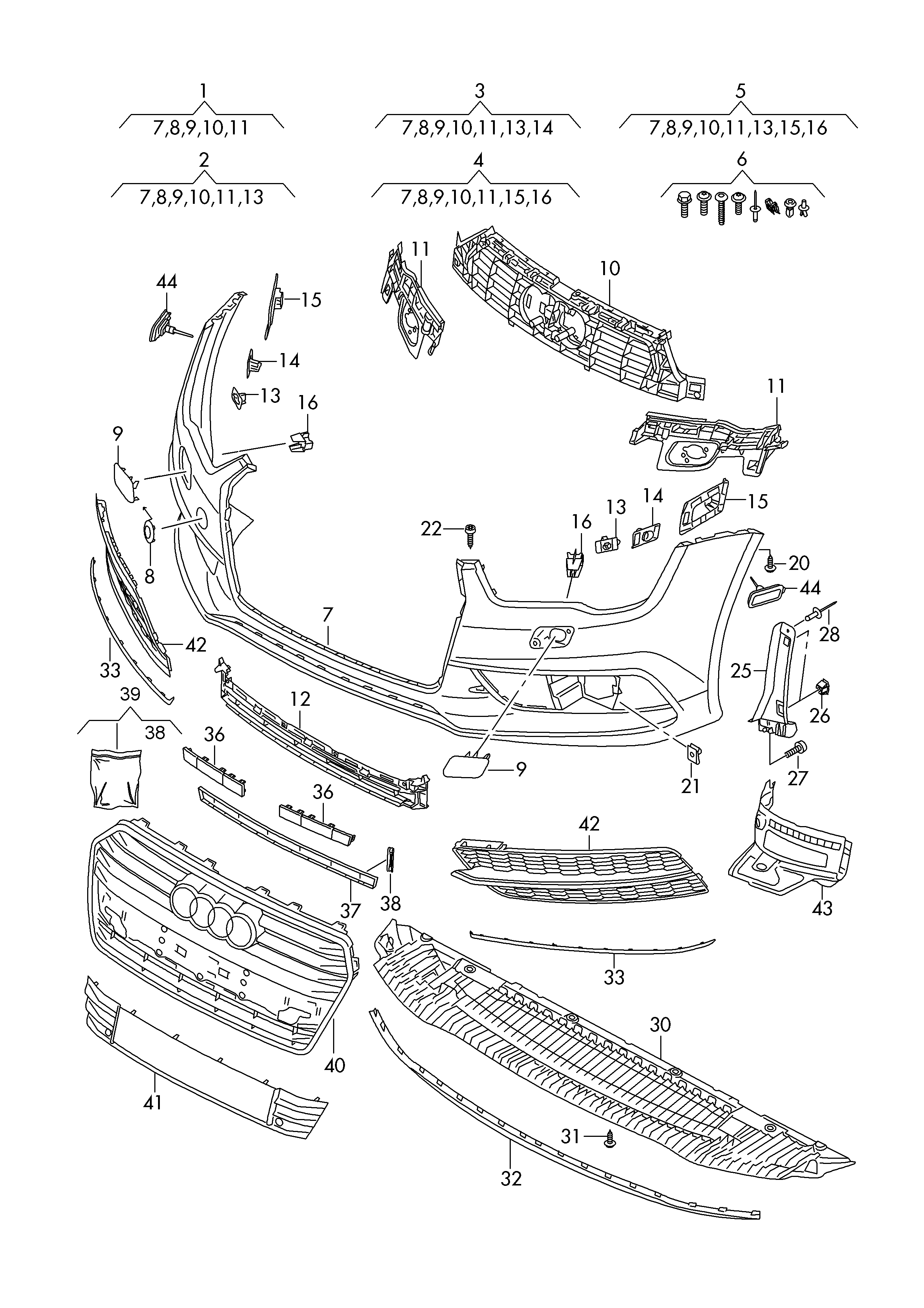 【39】4G0898956 Set of retainer, front bumper