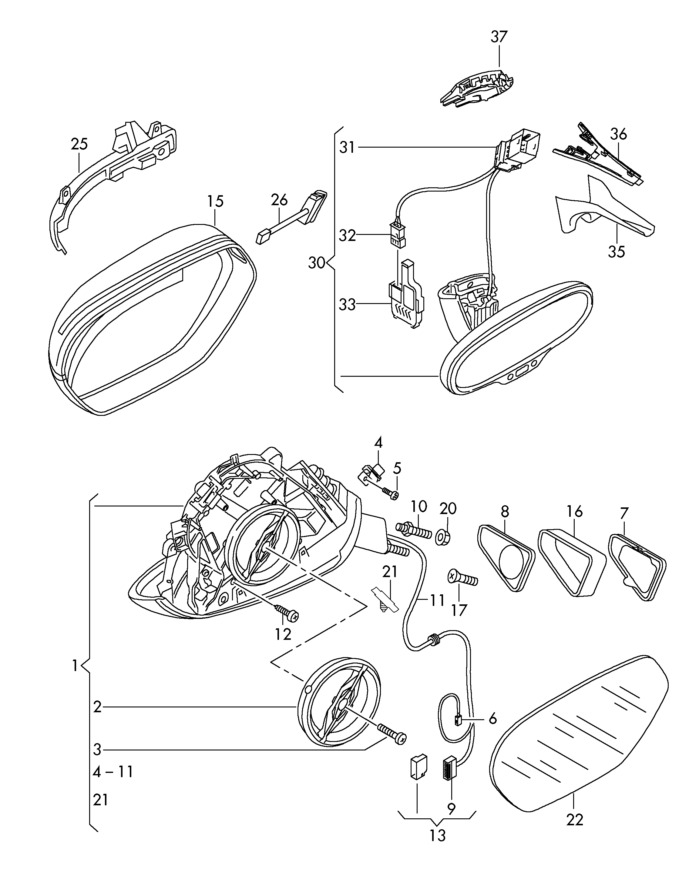 【30】8T0857511AB4PK Mirror, automatic anti-glare ghost (black)