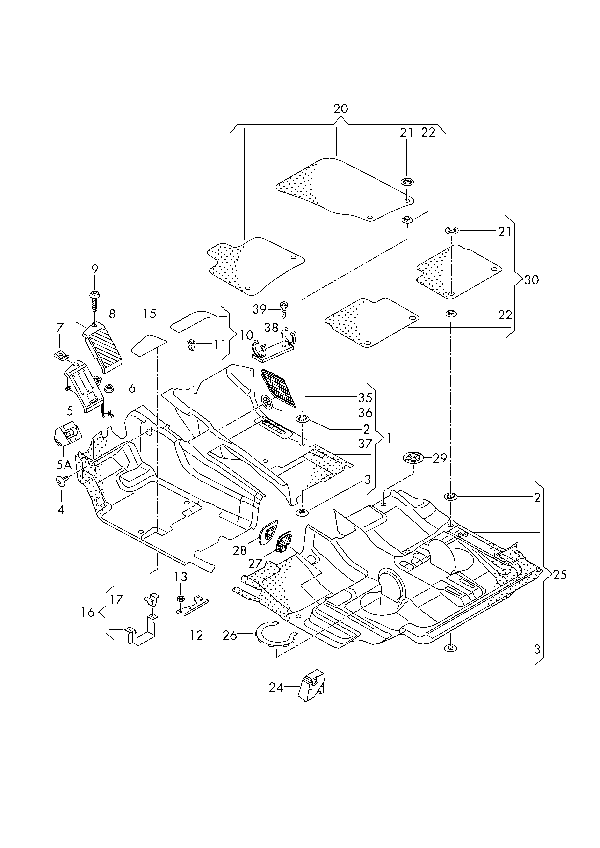 【30】4L0864450Q78 1 set of floor mats (soul (black)/natural rubber brown)