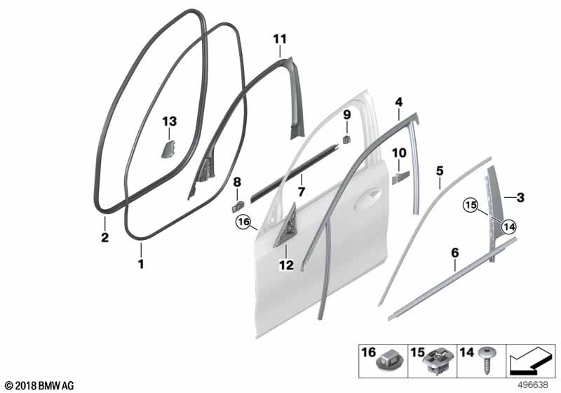 Seal, window rail outer front door lh
