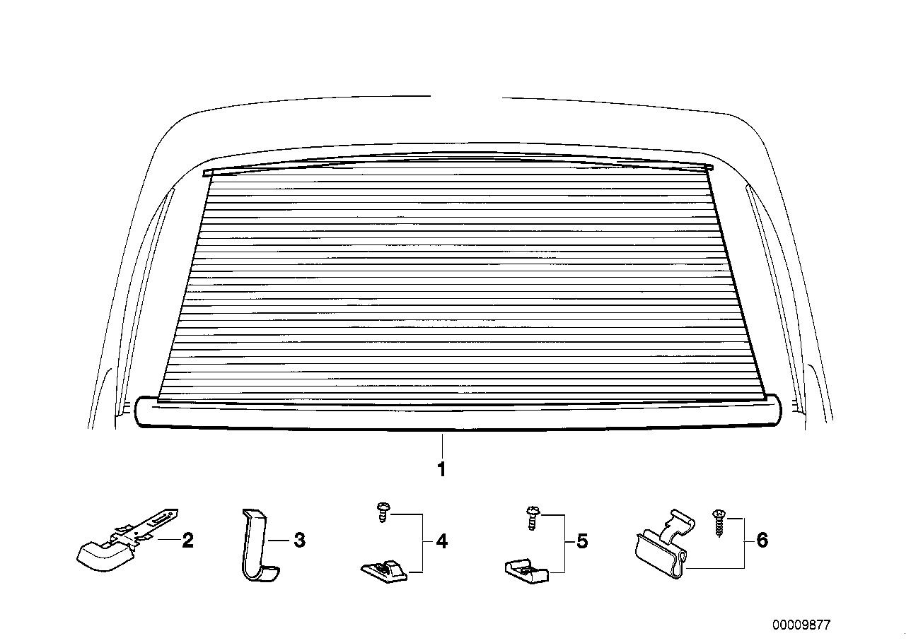 Glass, sunshade roller blind rear window