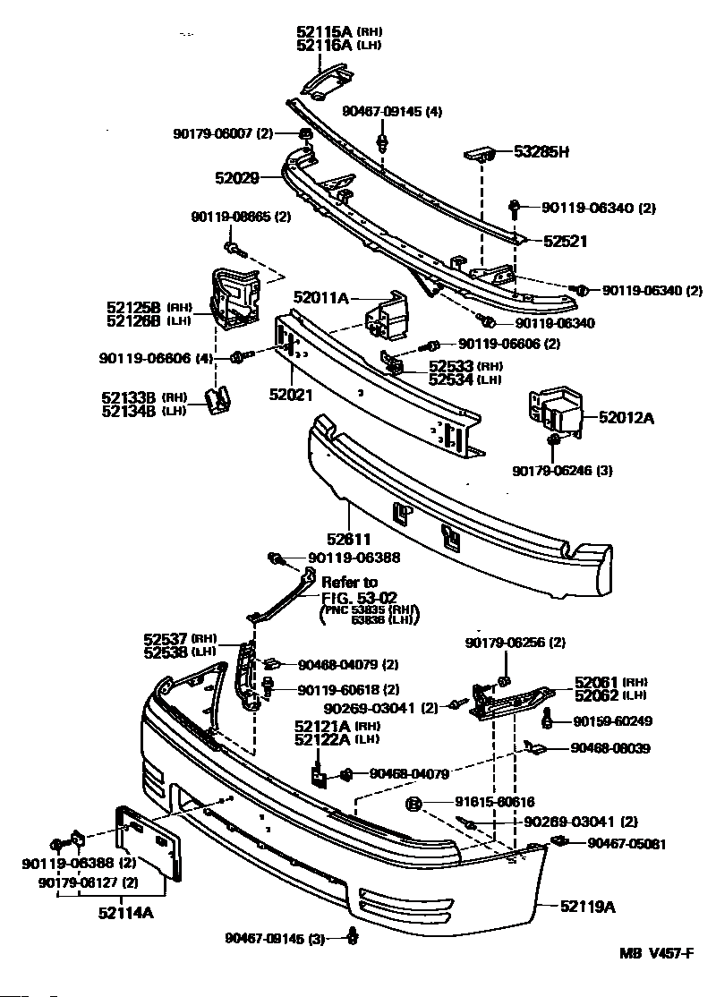 【52537】5253733020 RETAINER, FRONT BUMPER END, RH