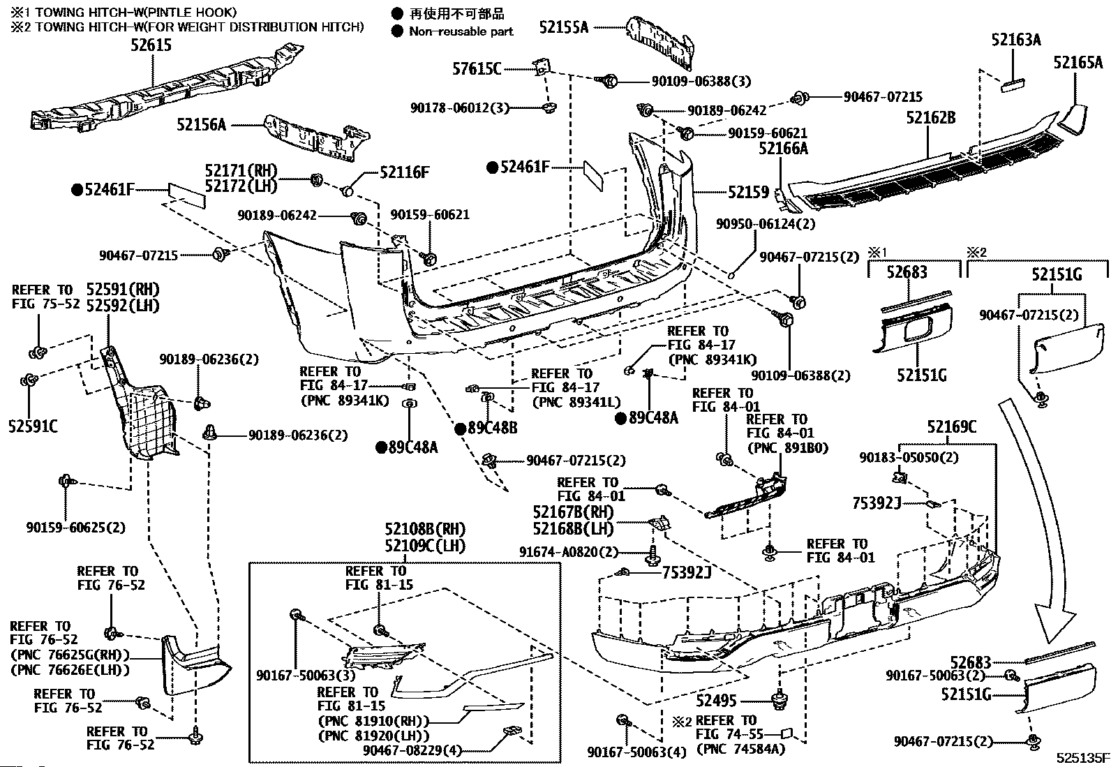 【52166A】5216660110 COVER, REAR BUMPER, UPR LH