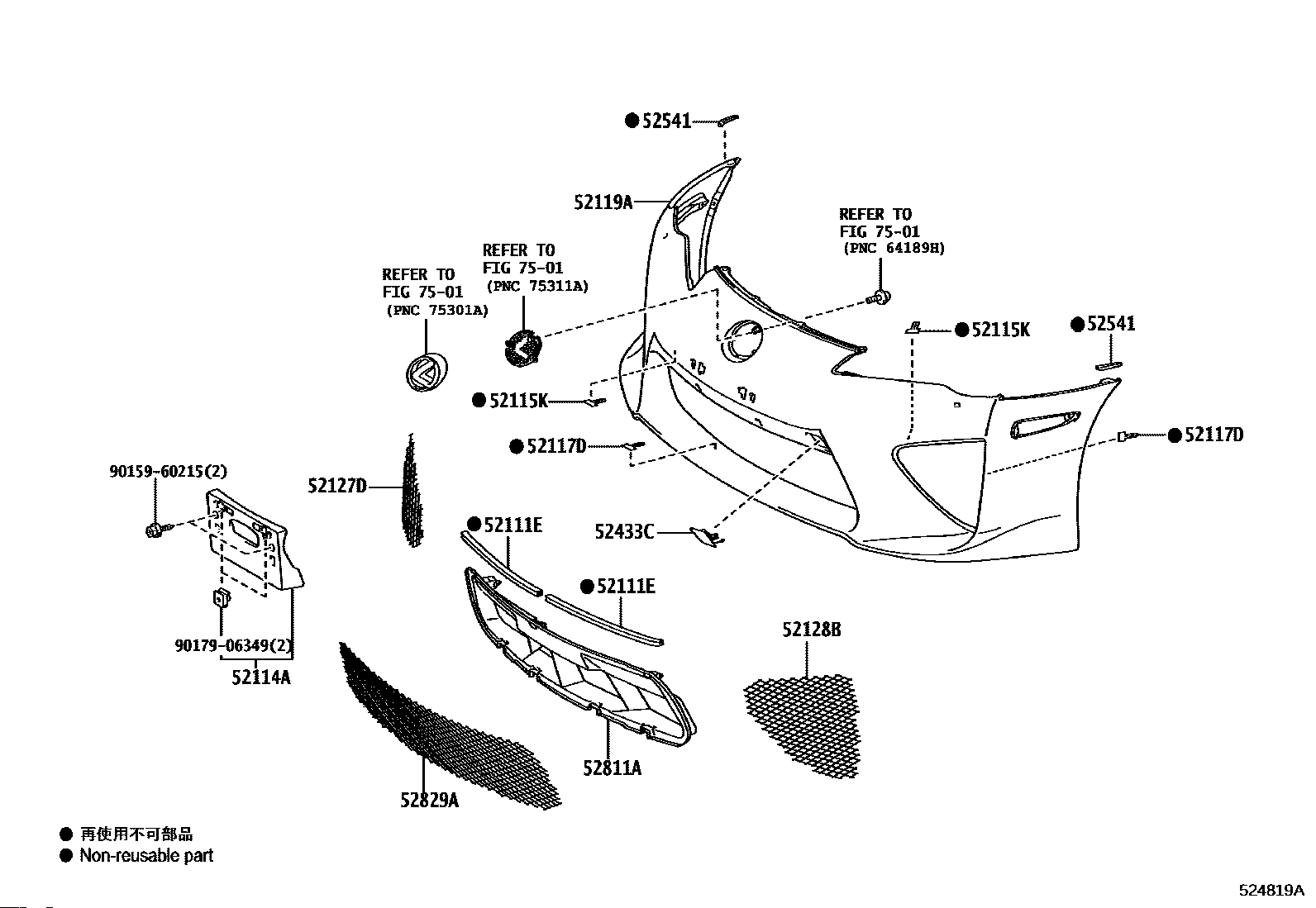 【52119A】5211977170 COVER, FR BUMPER