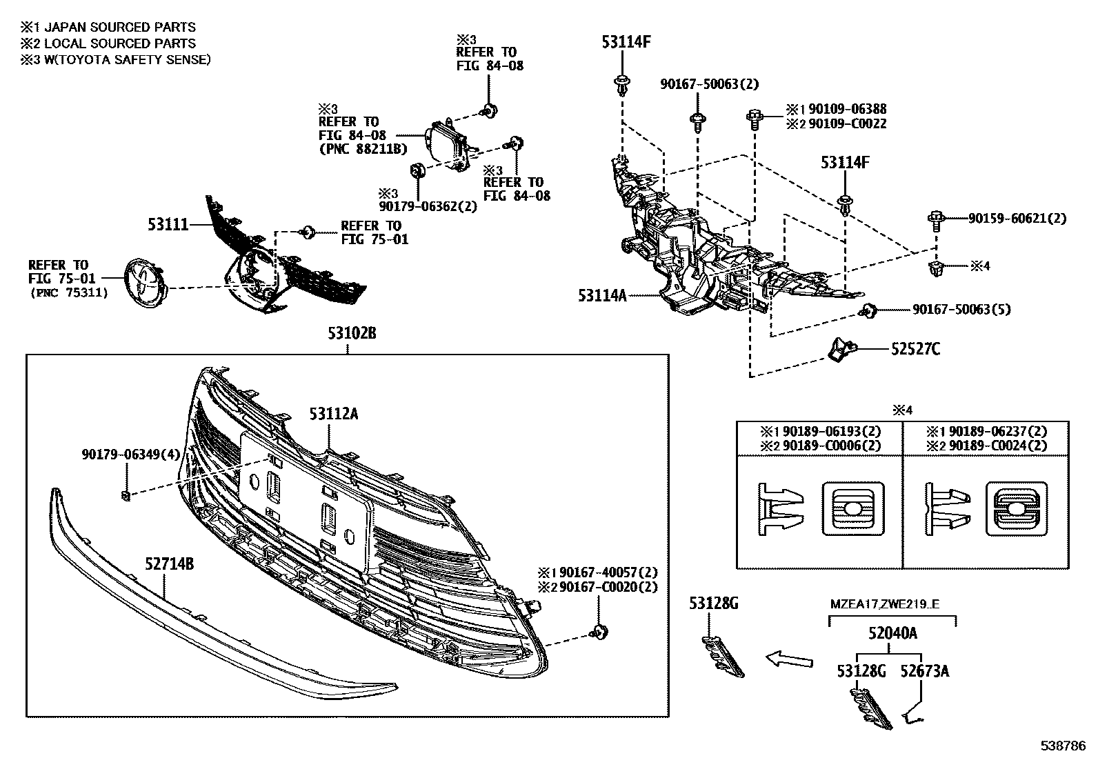 【53128G】5312802190 Grille, radiator lower, rh/lh