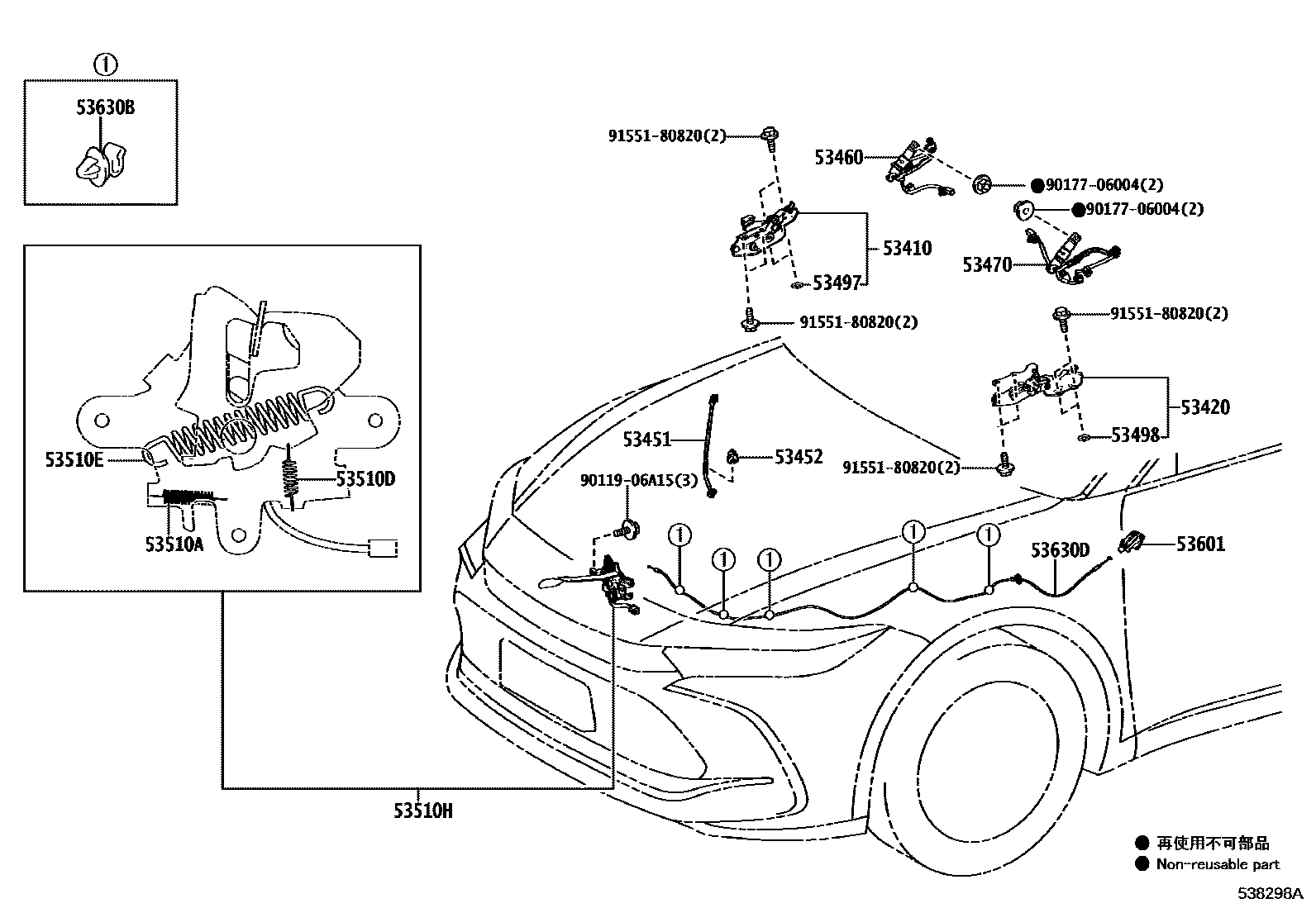 【53420】5342030380 HINGE ASSY, HOOD, LH