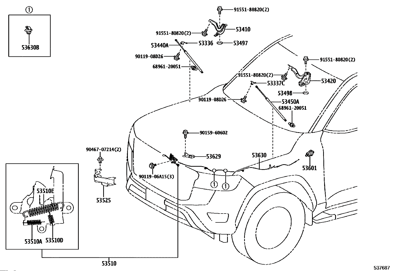 【53630】5363060220 CABLE ASSY, HOOD